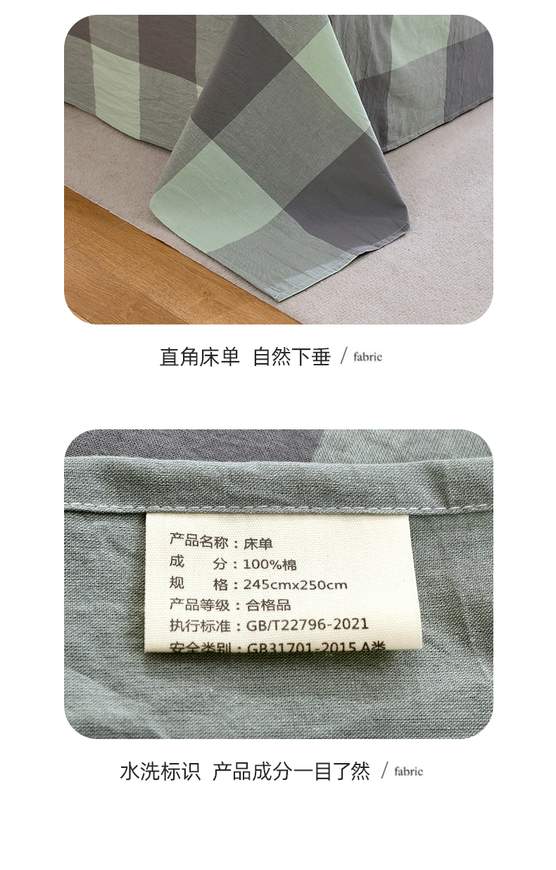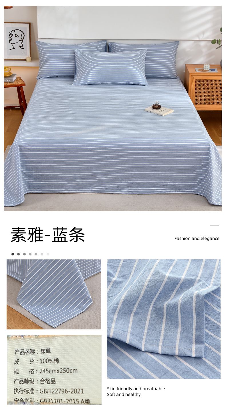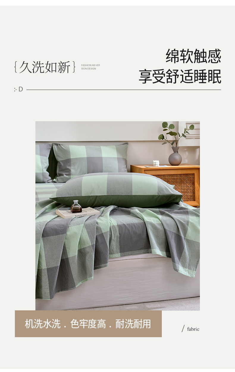 商品名称:春皖家纺 2026新款色织AB版水洗棉三件套四件套单品系列(单床单-A版风格一) 素雅-清格