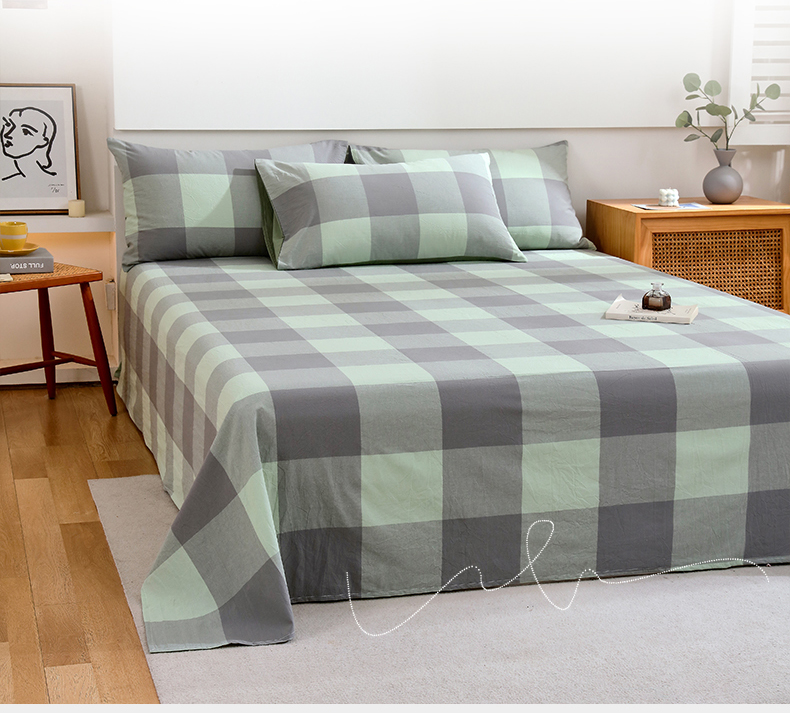 春皖家纺 2026新款色织AB版水洗棉三件套四件套单品系列(单床单-A版风格一) 素雅-清格