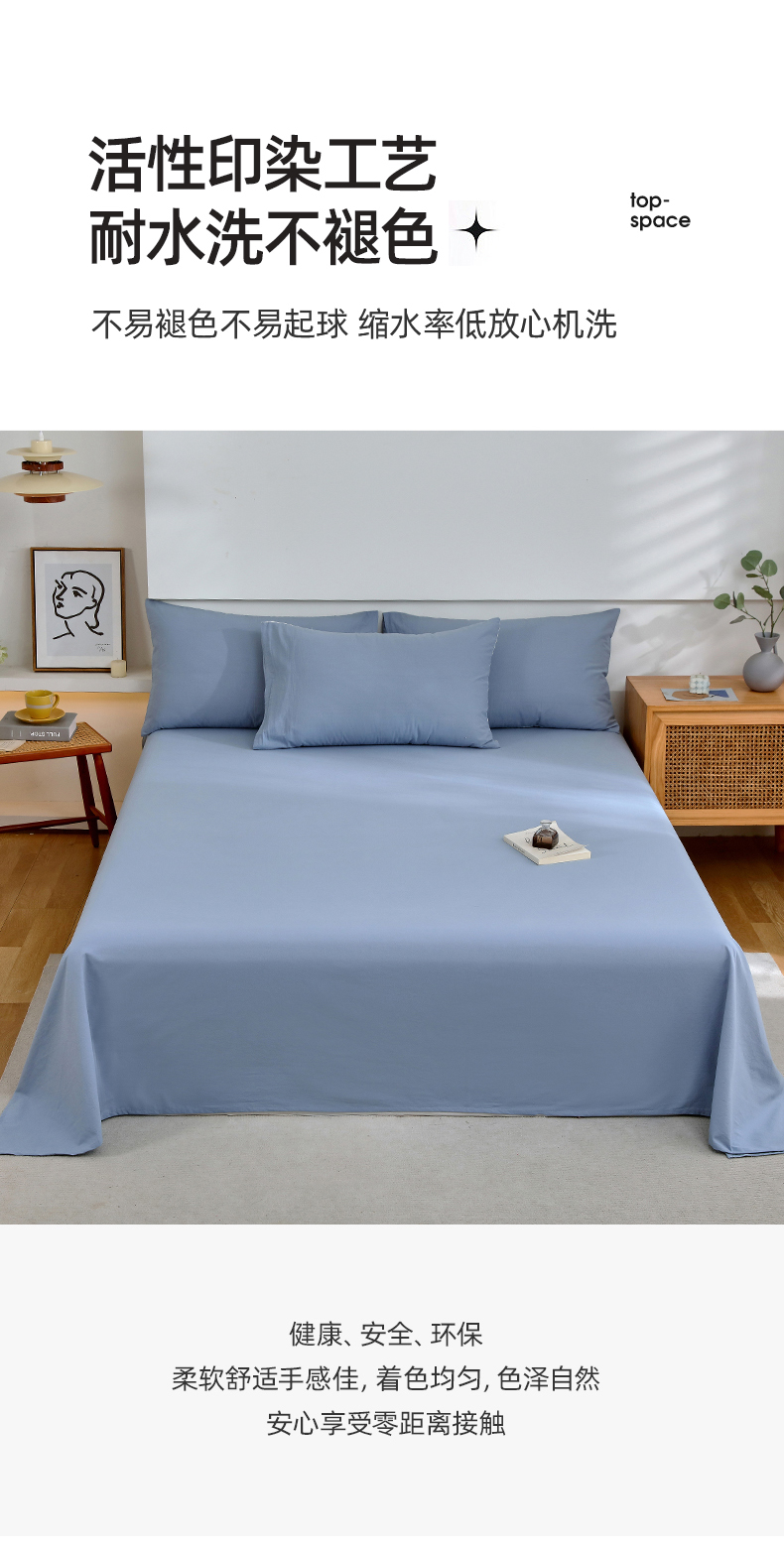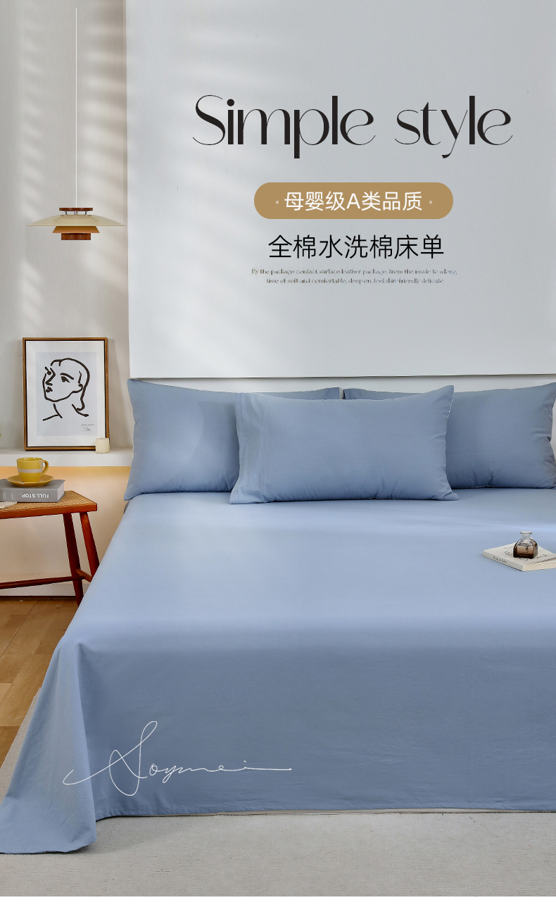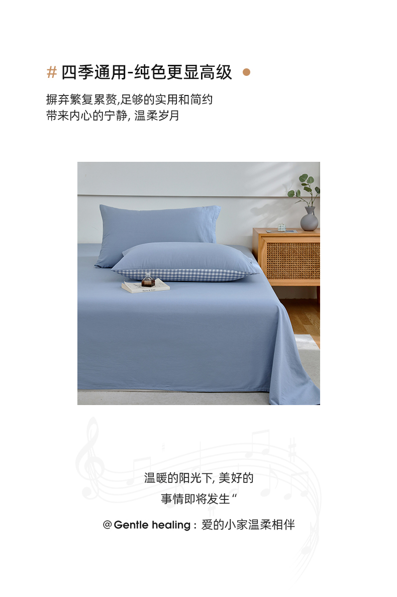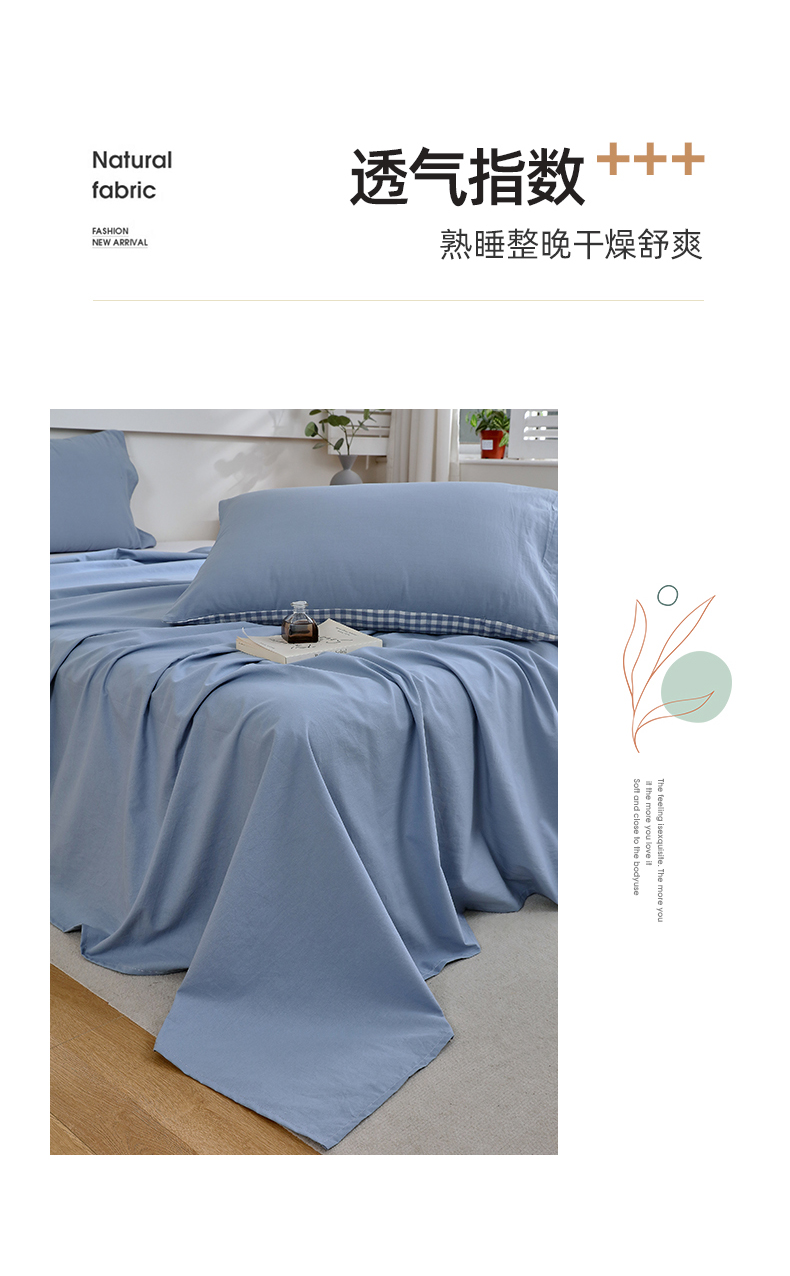 春皖家纺 2026新款色织AB版水洗棉三件套四件套单品系列(单床单-B版风格一) 素雅幻蓝
