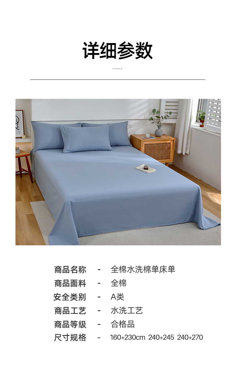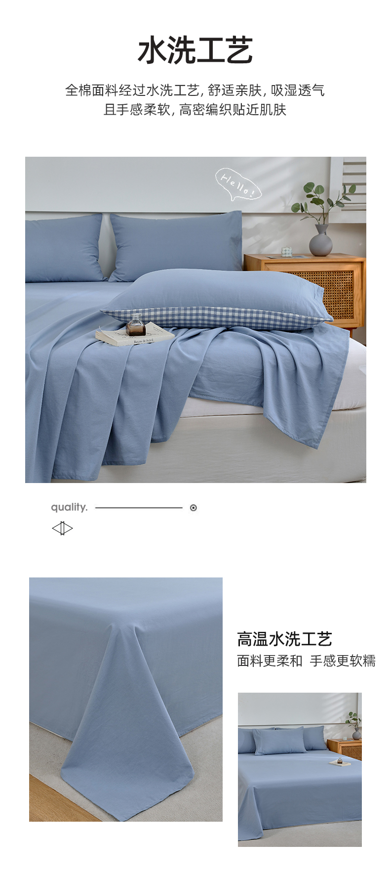 商品名称:春皖家纺 2026新款色织AB版水洗棉三件套四件套单品系列(单床单-B版风格一) 素雅幻蓝