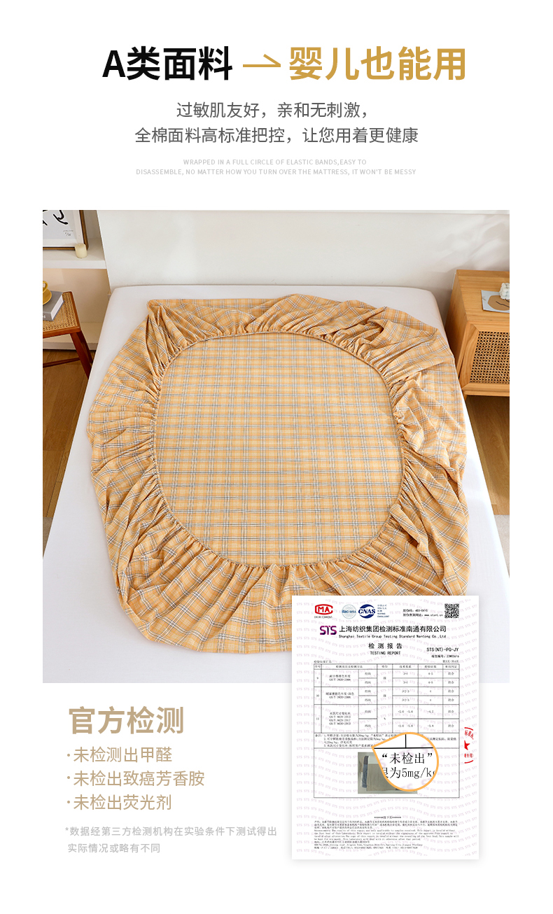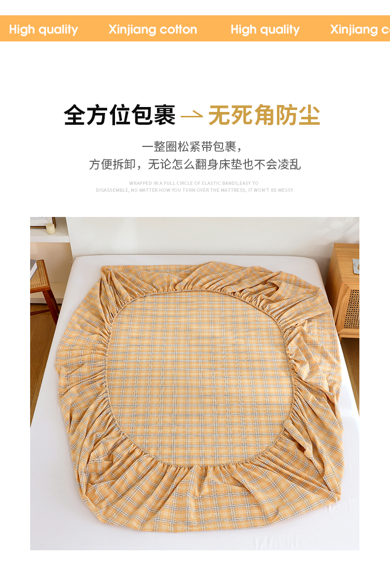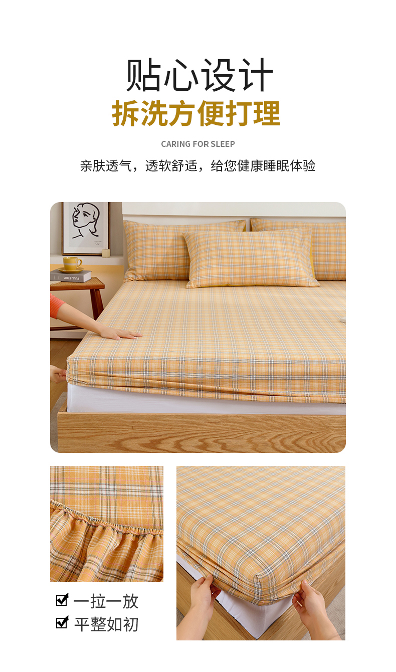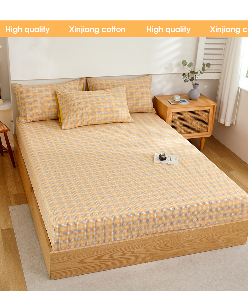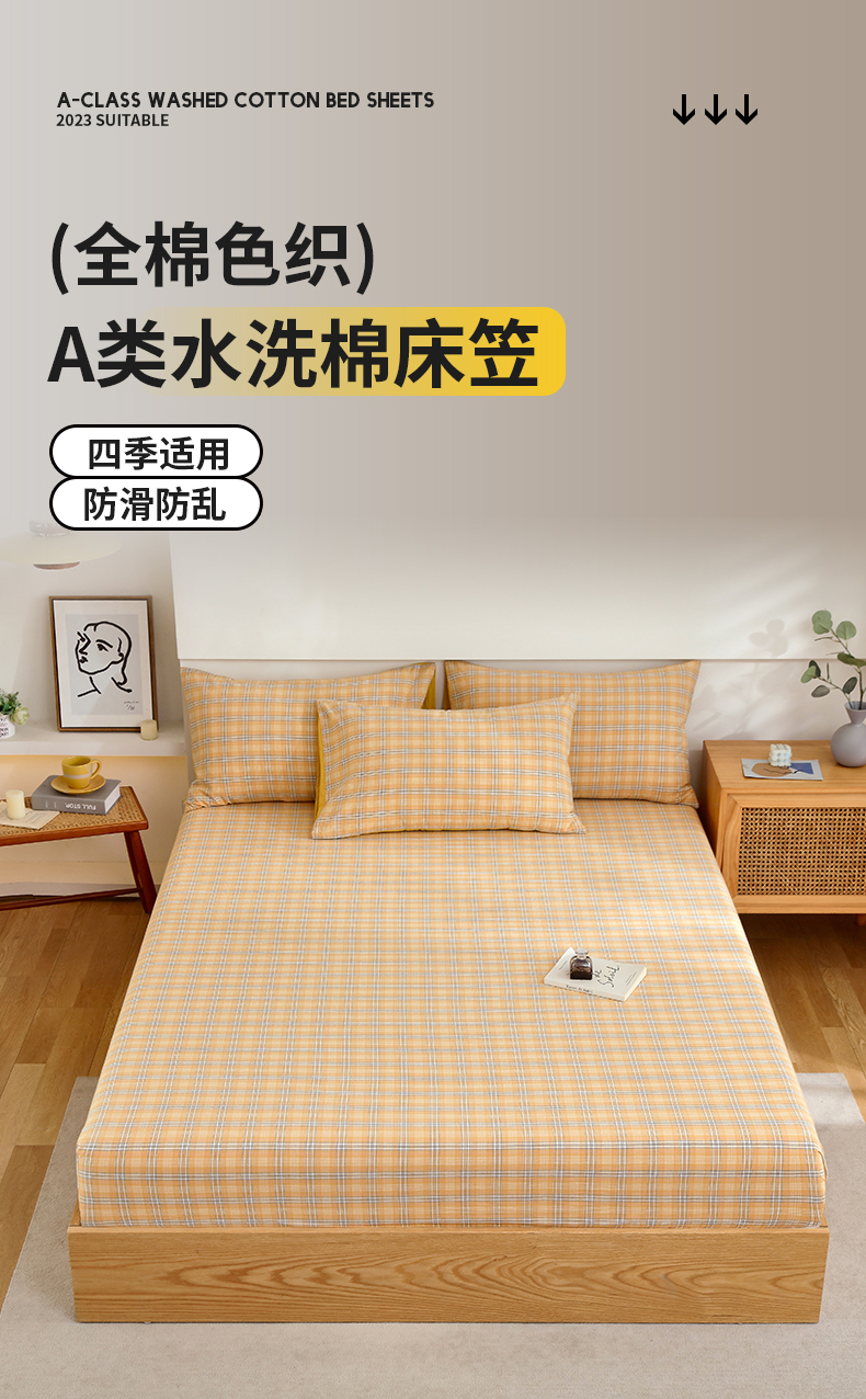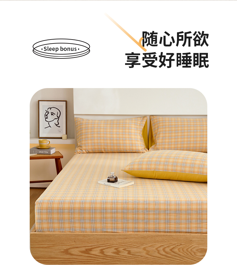 春皖家纺 2026新款色织AB版水洗棉三件套四件套单品系列(单床笠-A版风格一) 素雅-黄条
