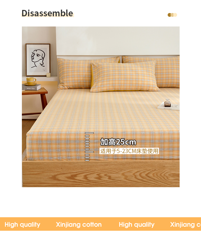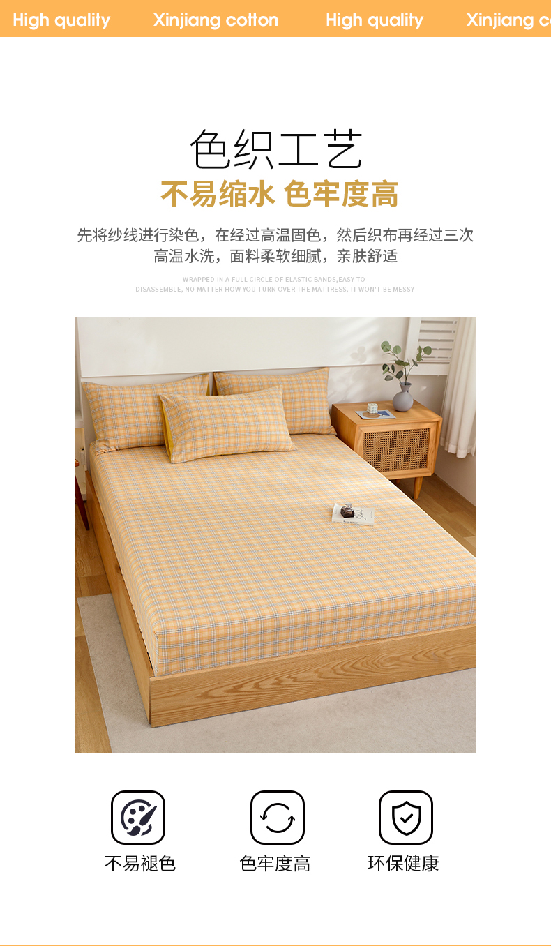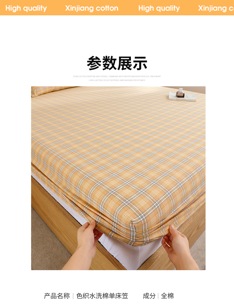 商品名称:春皖家纺 2026新款色织AB版水洗棉三件套四件套单品系列(单床笠-A版风格一) 素雅-黄条