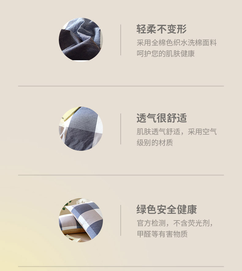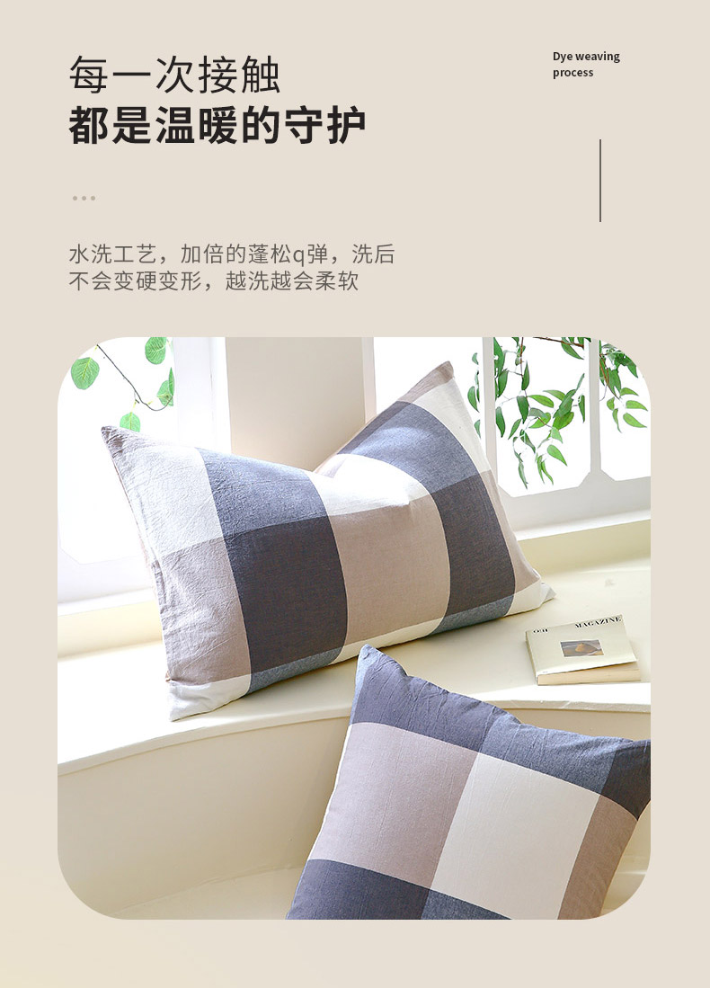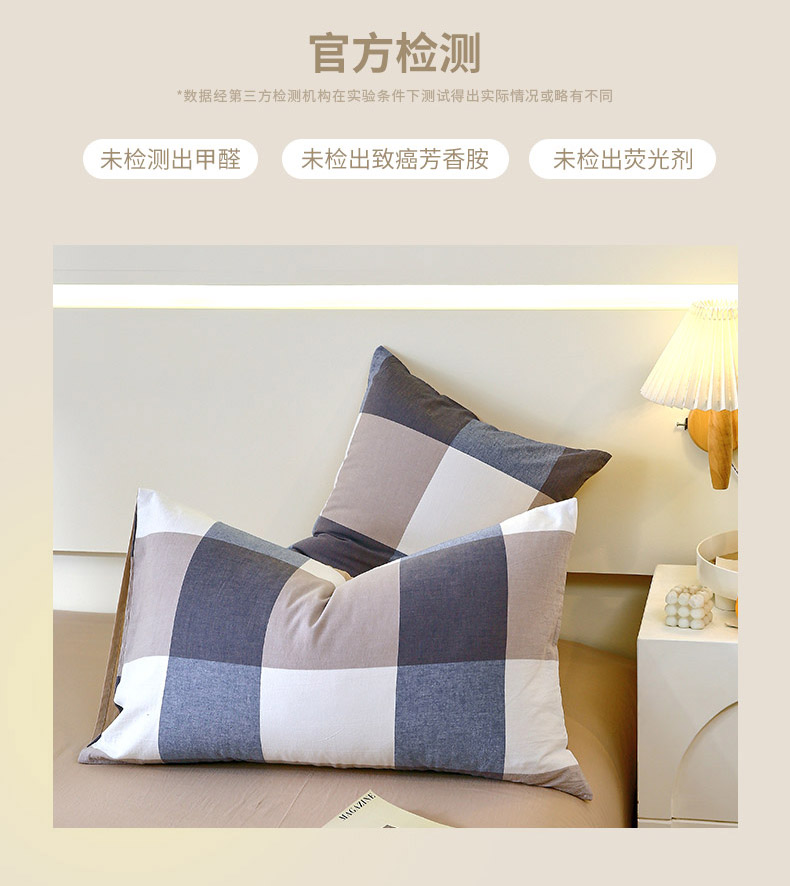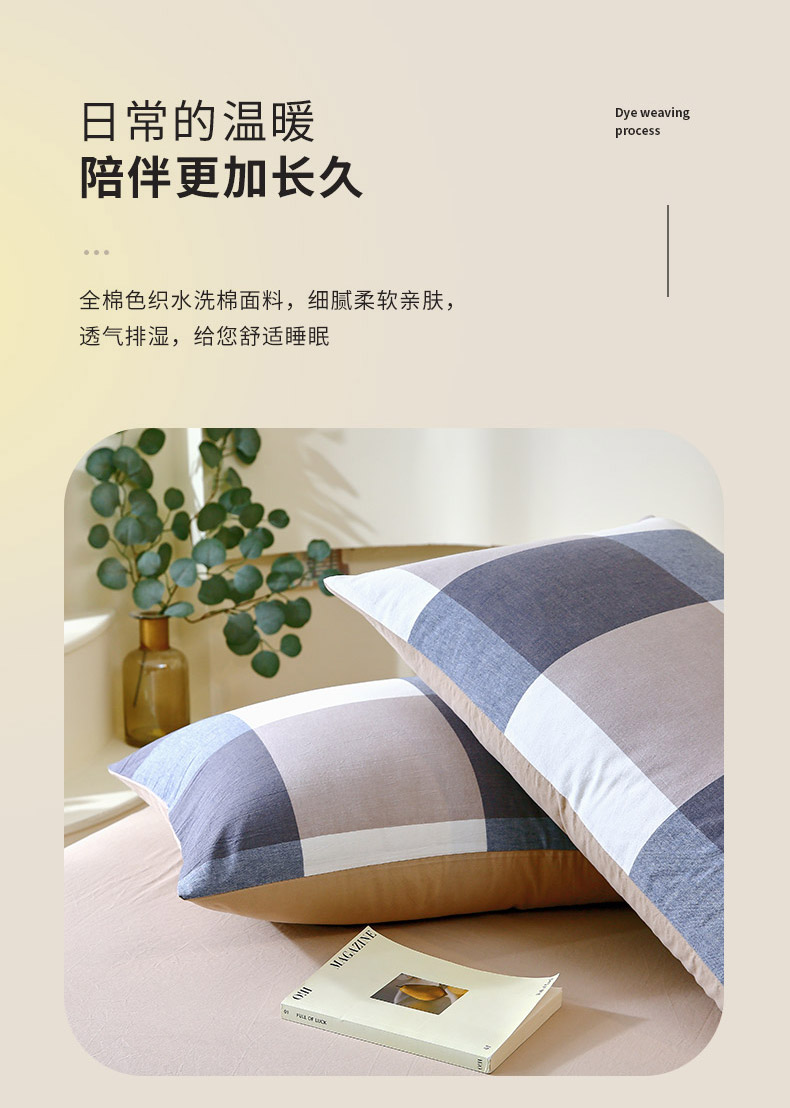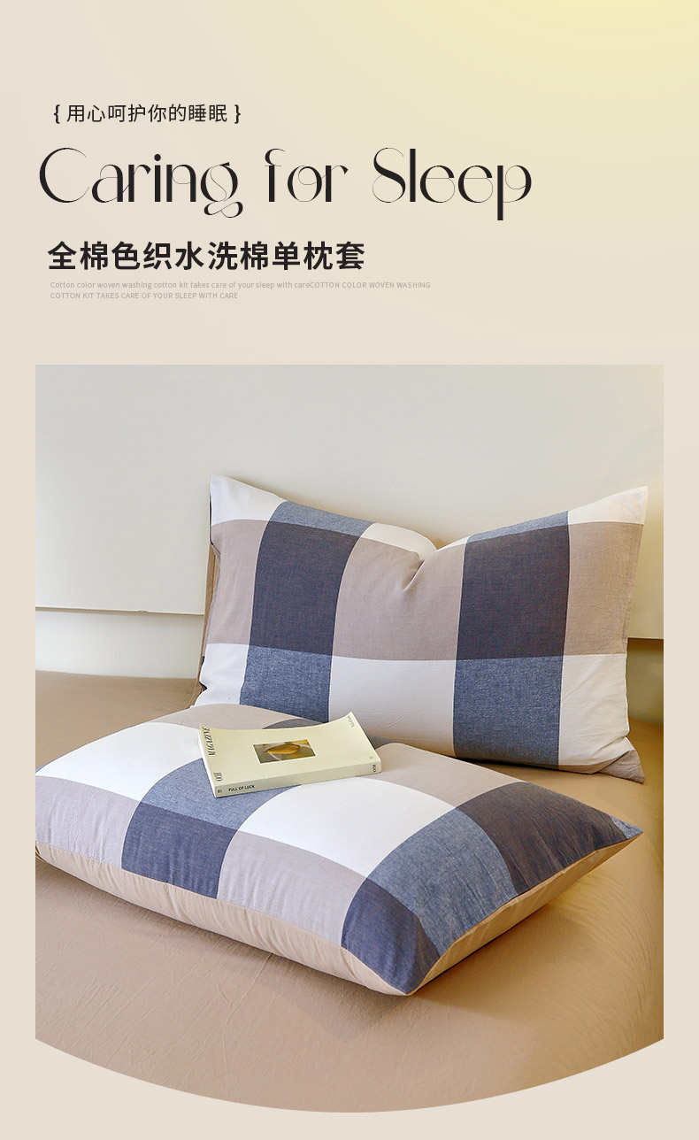 春皖家纺 2026新款色织AB版水洗棉三件套四件套单品系列(单枕套风格一) 素雅-蓝大格