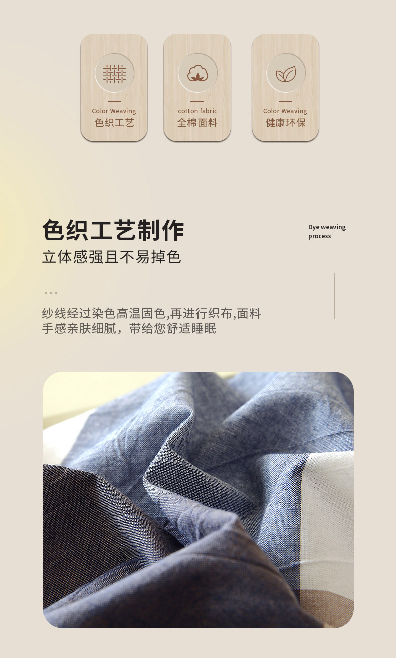 商品名称:春皖家纺 2026新款色织AB版水洗棉三件套四件套单品系列(单枕套风格一) 素雅-蓝大格
