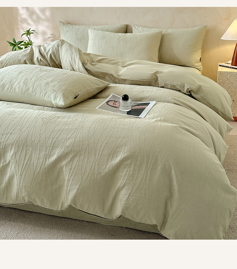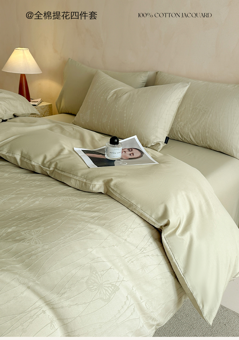 当前位置: 91家纺网 > 商品网购 > 床品套件 > 四件套 > 全棉普通四件套 > 恒爱家纺 2026春夏新款全棉纯棉提花四件套 千丝蝴蝶-绿