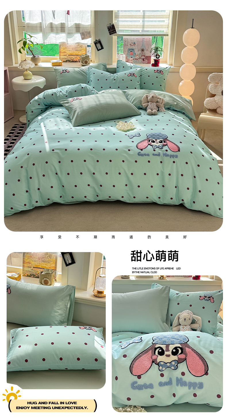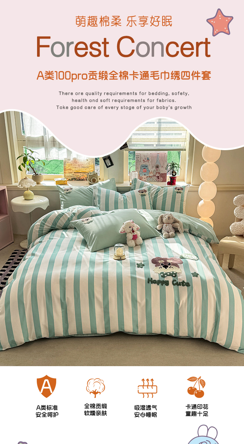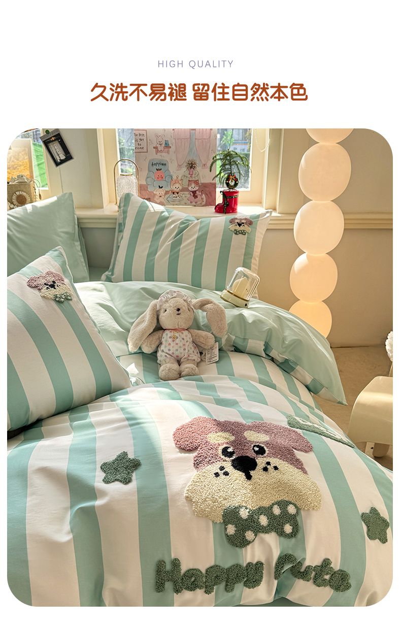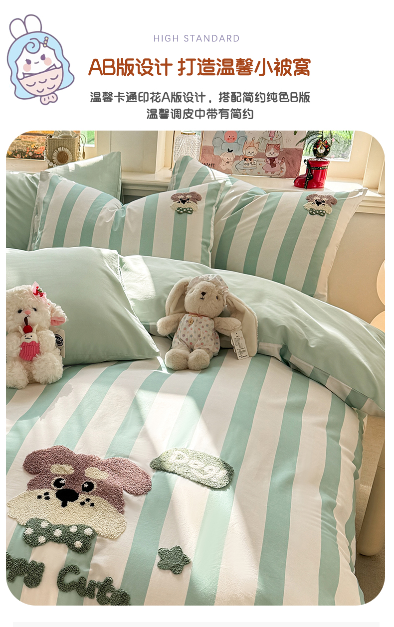 当前位置: 91家纺网 > 商品网购 > 床品套件 > 四件套 > 全棉普通四件套 > 卧趣家纺 2026新款A类100Pro贡缎全棉纯棉卡通毛巾绣四件套 条纹俏皮狗
