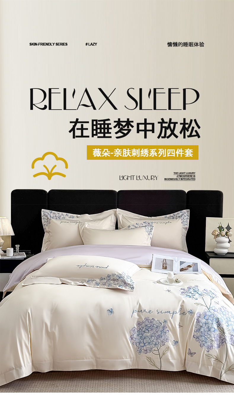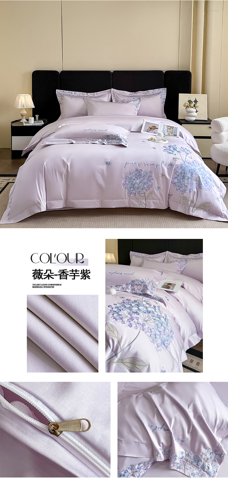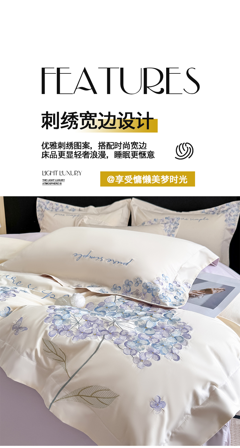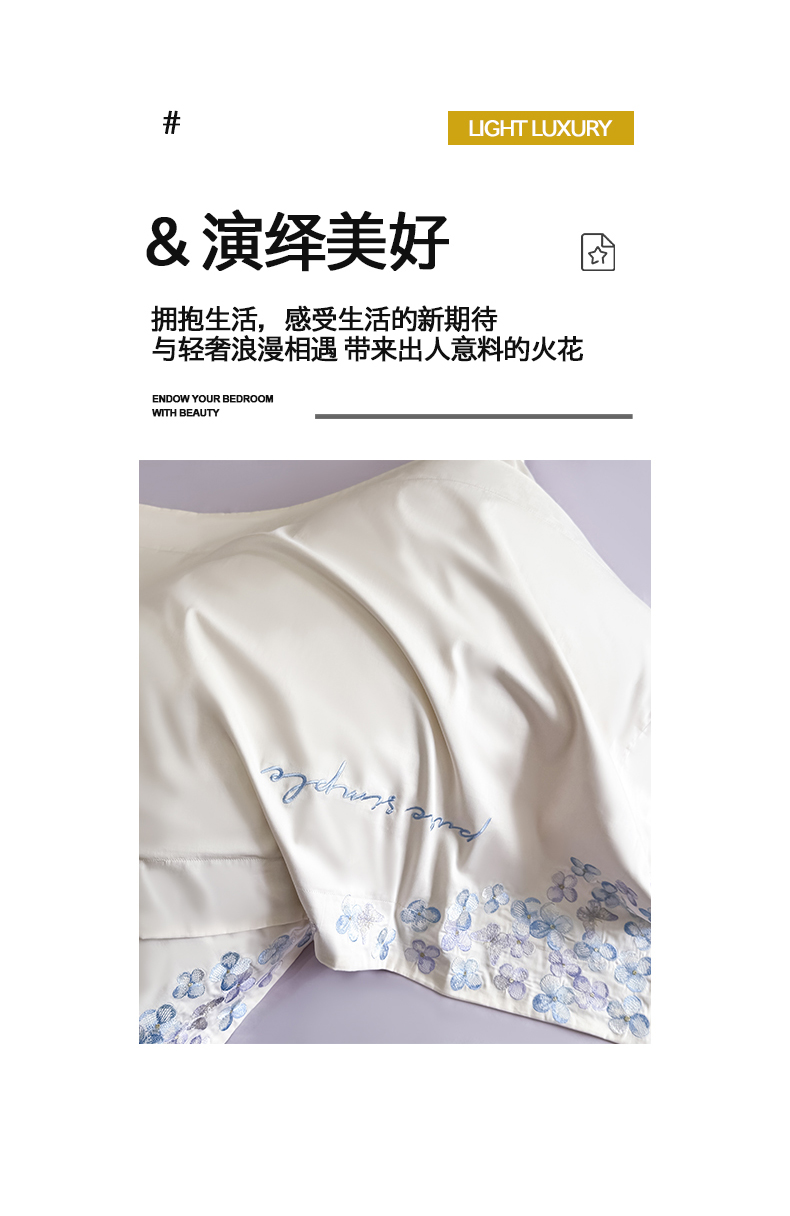 当前位置: 91家纺网 > 商品网购 > 床品套件 > 四件套 > 其它四件套 > 置顶家纺 2026新款亲肤刺绣四件套-薇朵 薇朵-白+香芋紫