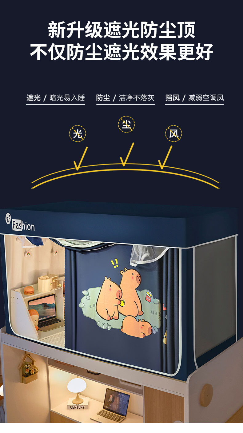 当前位置: 91家纺网 > 商品网购 > 床上用品 > 蚊帐 > 学生蚊帐 > 壹和 2026新款强遮光纳米技术静电植绒环保透气床帘加密纱学生蚊帐 卡皮巴拉