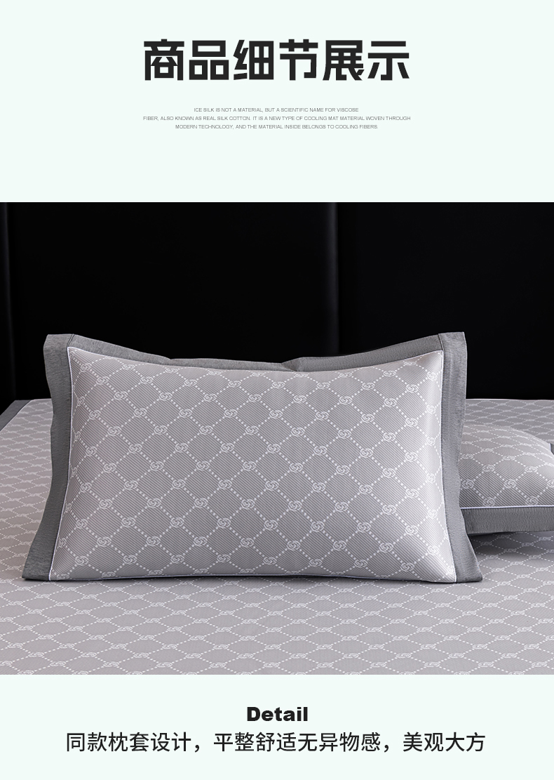 (总)小牛席业 2026新款半定位大提花凉感冰丝席(床笠款)凉席竹席藤席冰藤席乳胶席豆豆席,灰色,粉色,蓝色,香槟