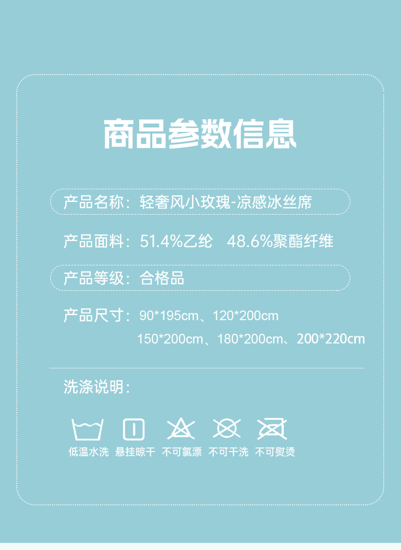 商品名称:(总)小牛席业 2026新款轻奢风小玫瑰凉感冰丝席系列凉席藤席冰丝席冰丝席凉感席乳胶席凉感豆豆席