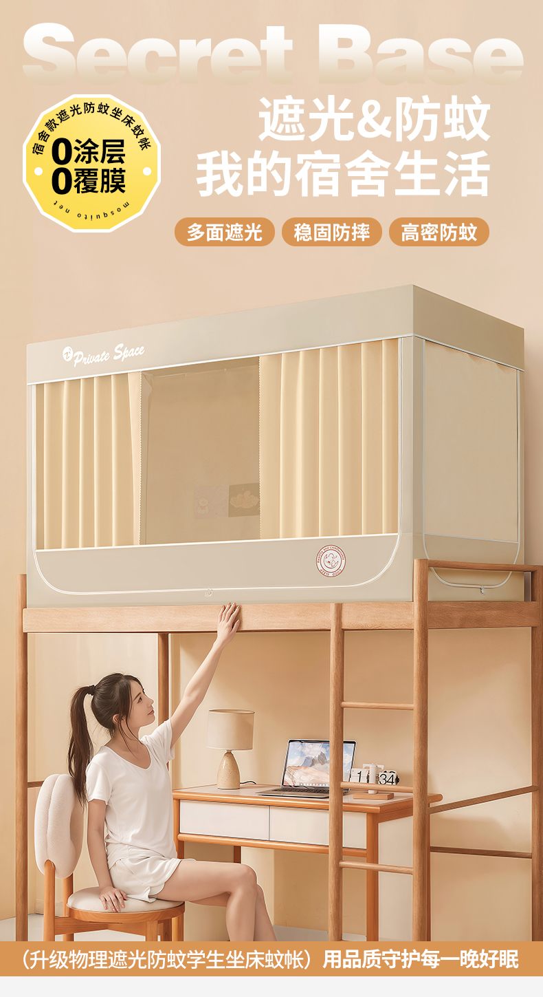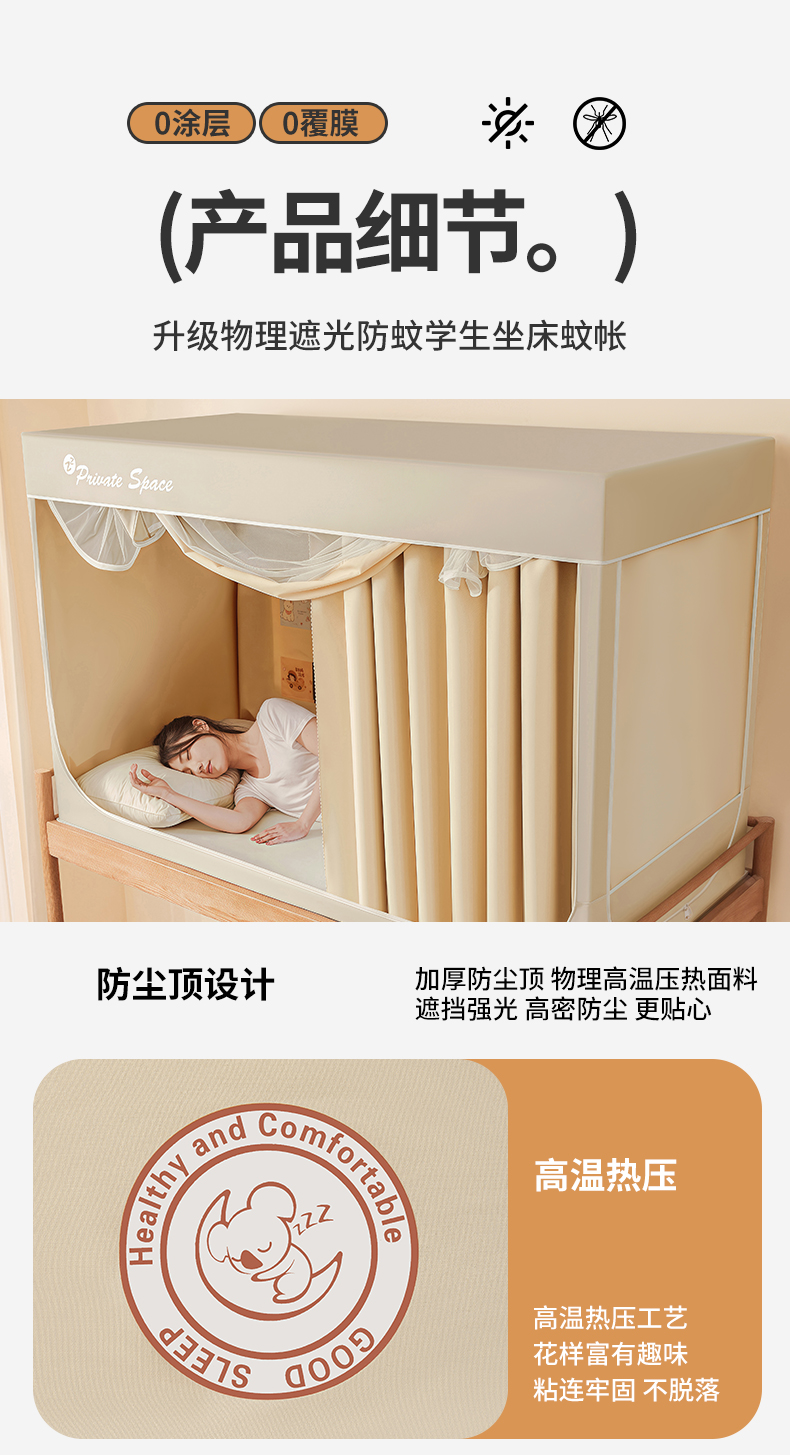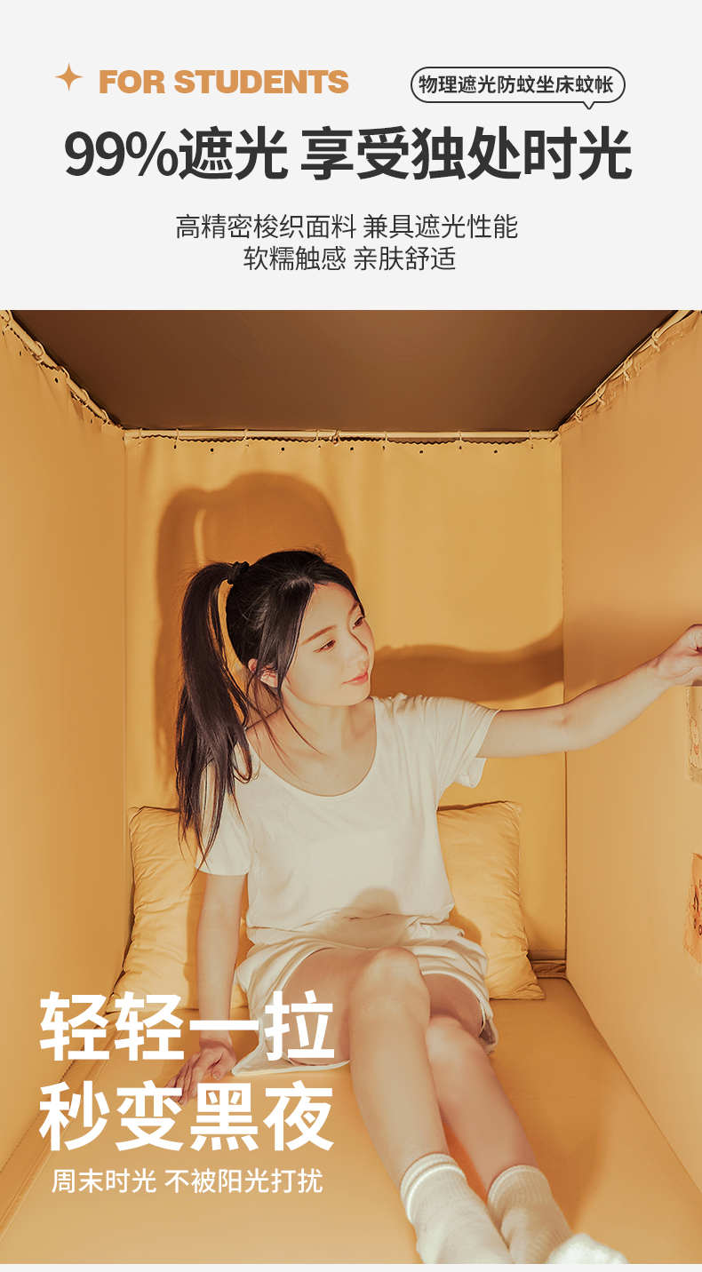当前位置: 91家纺网 > 商品网购 > 床上用品 > 蚊帐 > 学生蚊帐 > 壹和 2026新款纯物理无涂层无覆膜款遮光防蚊学生坐床蚊帐 优雅米