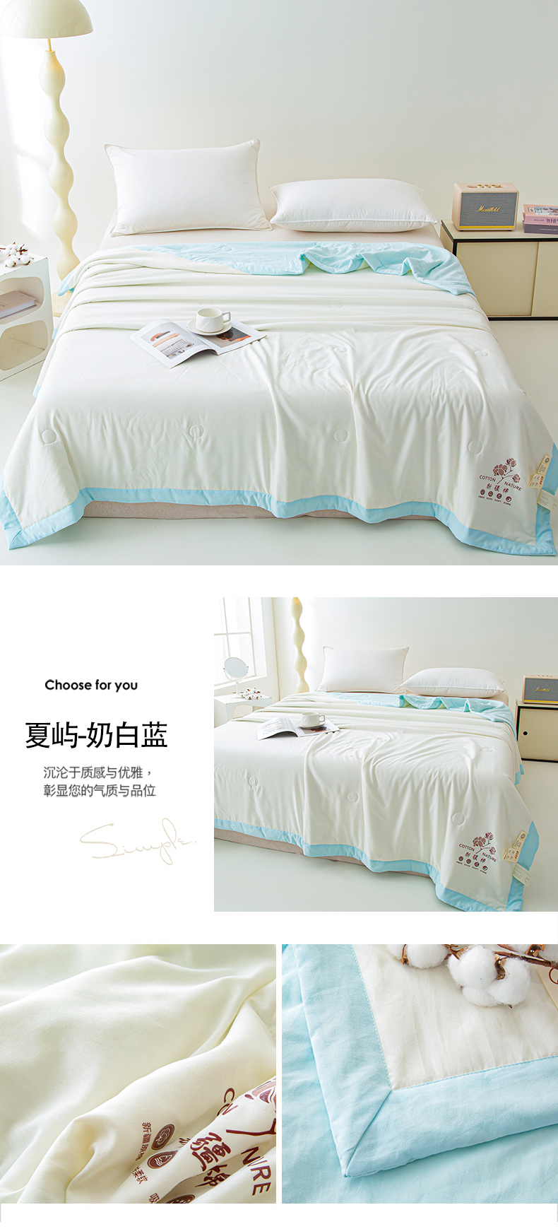 商品名称:美之润家纺 2026新款纯色棉花夏被 夏屿-奶白蓝