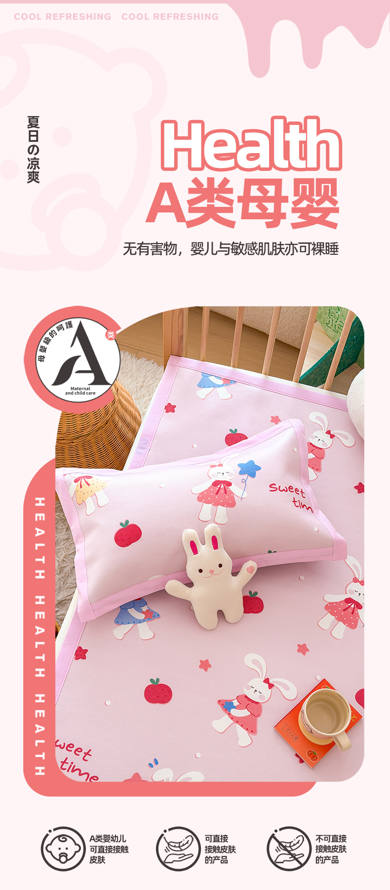 当前位置: 91家纺网 > 商品网购 > 床上用品 > 凉席 > 冰丝席 > 嗨生活 2026新款600D冰丝凉席儿童婴儿床凉席幼儿园凉席拼床凉席席子 粉红小兔