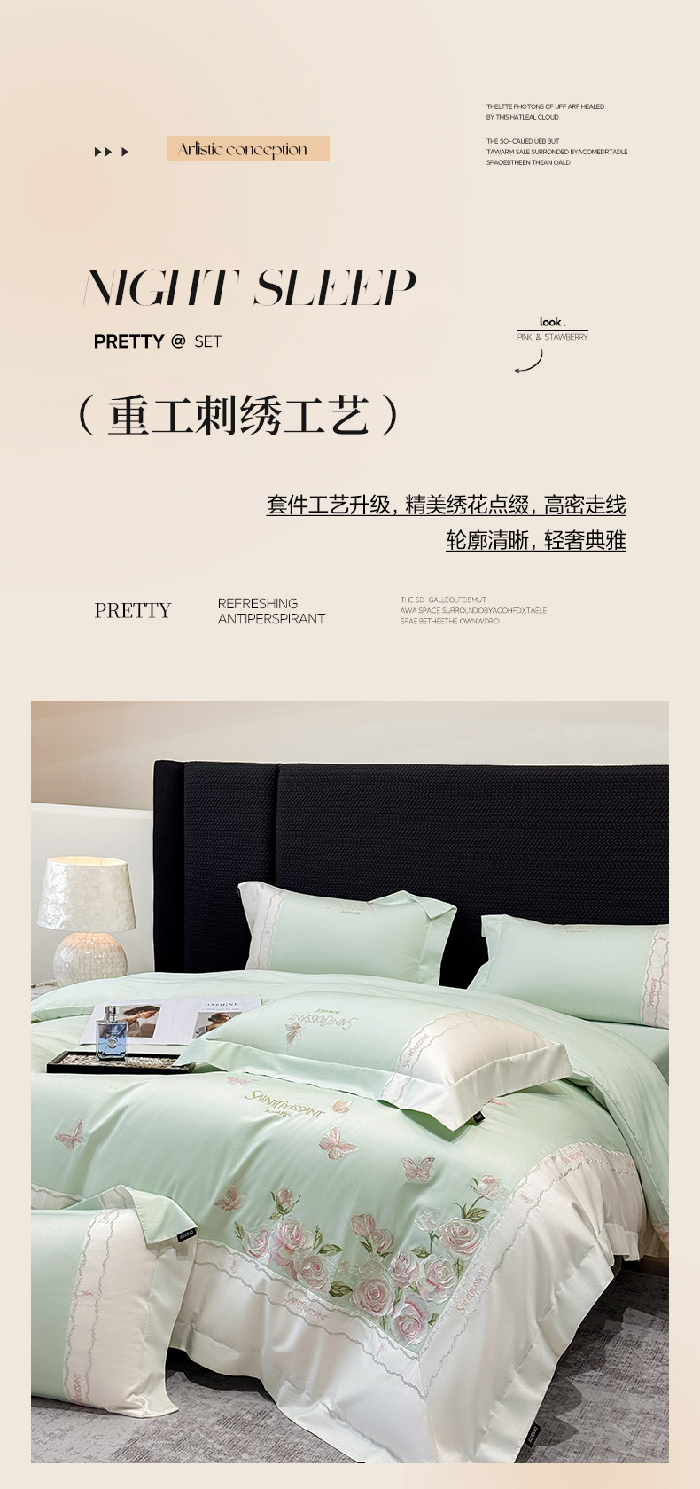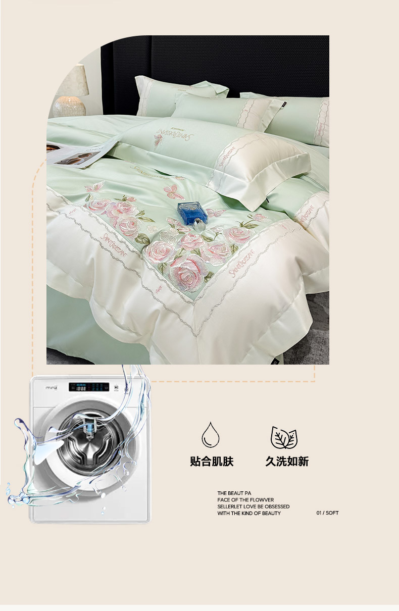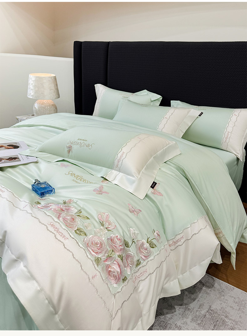 当前位置: 91家纺网 > 商品网购 > 床品套件 > 四件套 > 长绒棉四件套 > 2026爆款新品A类50S双股长绒棉纯棉四件套100全棉重工花卉刺绣被套床单床笠小清新床上用品溪畔玫瑰 溪畔玫瑰-茶绿