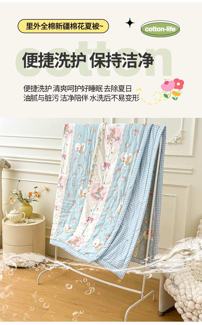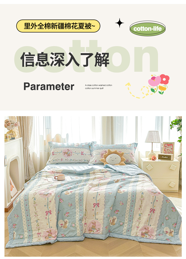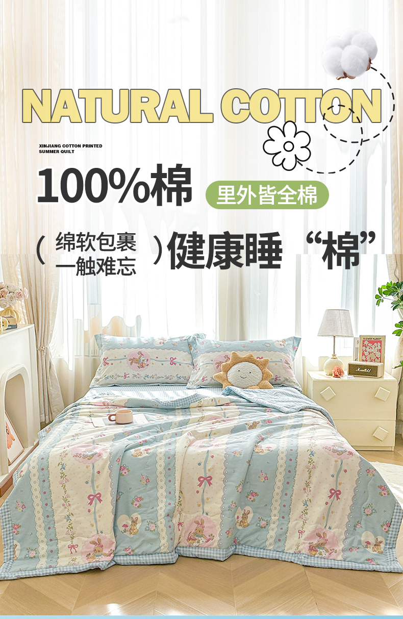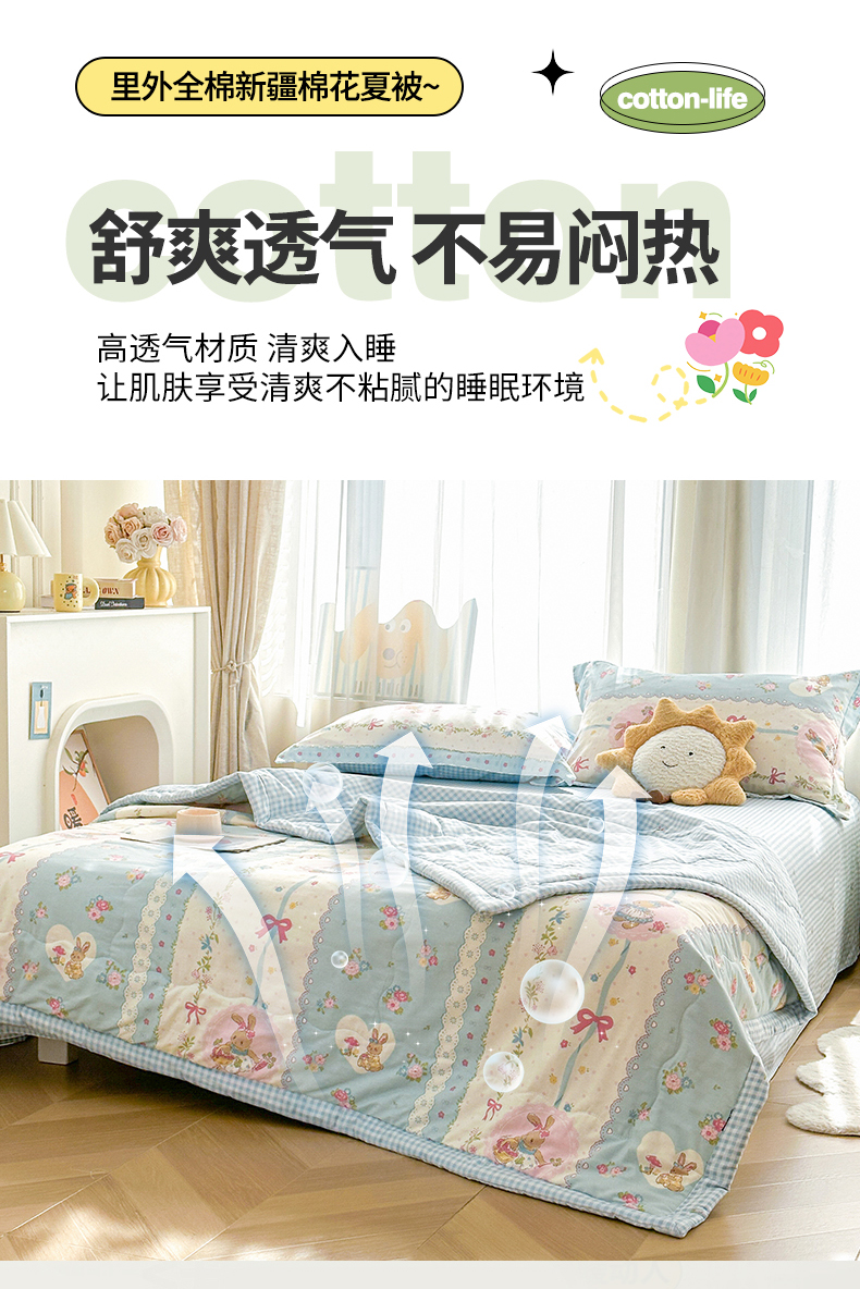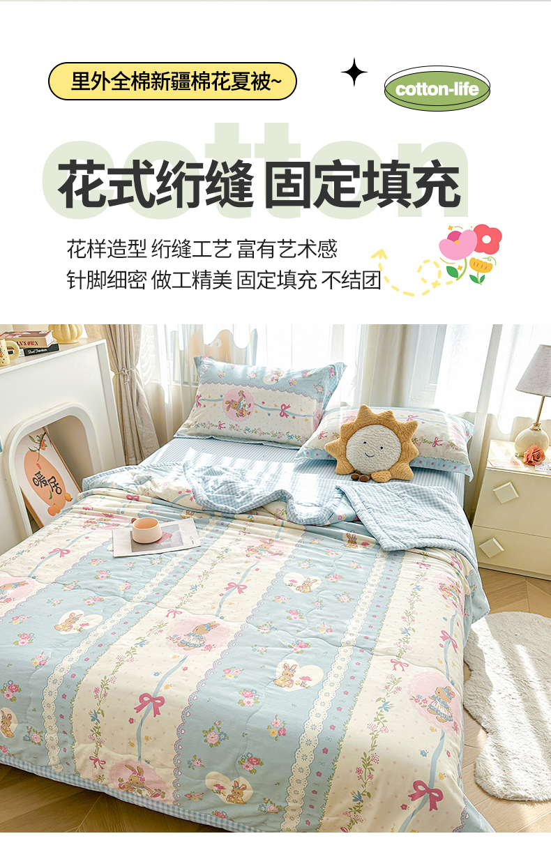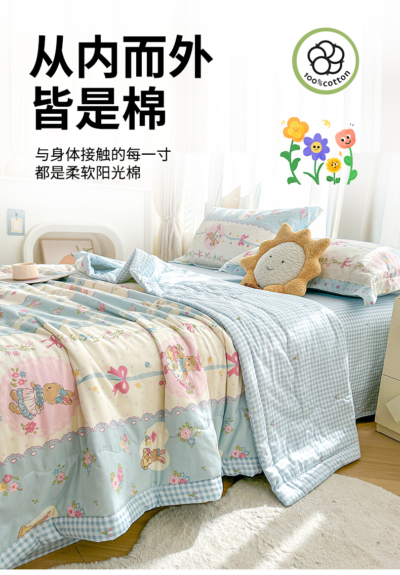 商品名称:易博家纺 2026新款小清新款里外全棉纯棉夏被夏凉被空调被 山野萌兔