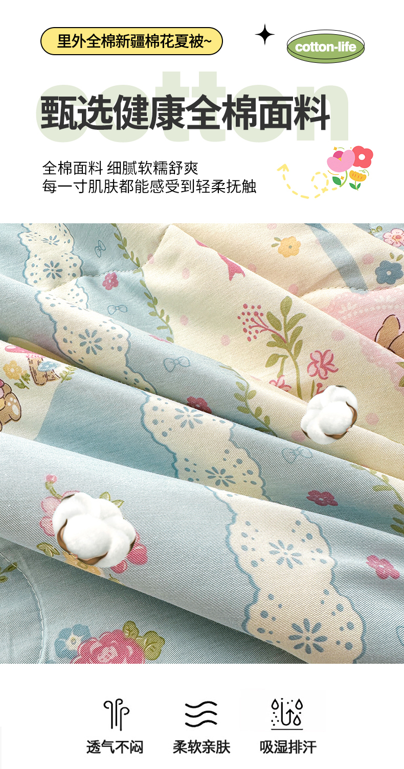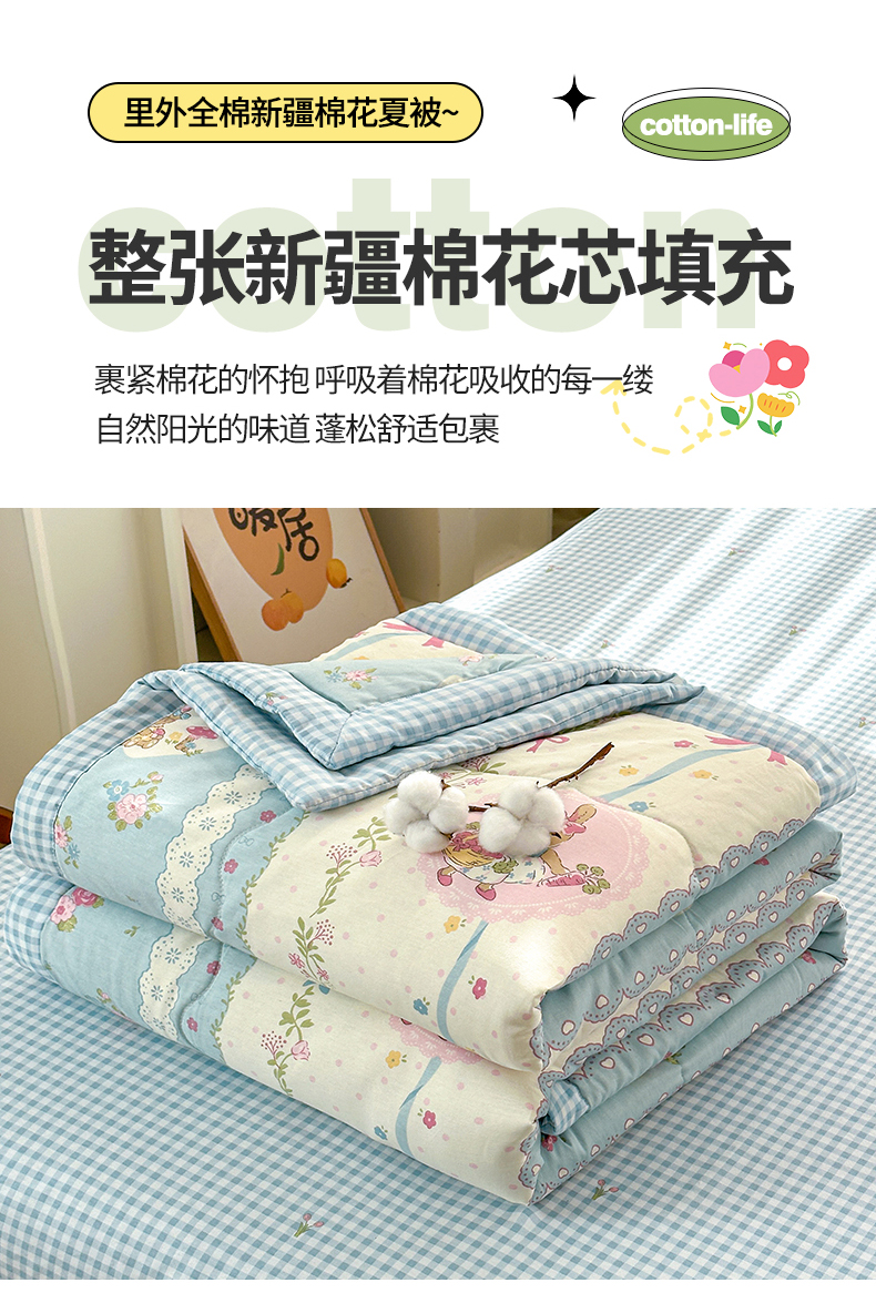 (总)易博 2025新款100% 棉花小清新双层纱新疆棉夏被夏凉被空调被棉花被(带买家秀),爱丽丝,蝶舞,动物世界,好丽友,花趣,花园兔,可爱萌宠 卡其,可爱萌宠 绿,腊肠狗,曼塔玫瑰,绵绵南瓜,木马奇缘,山茶物语,田园牧歌,熊博士,组合图仅做展示