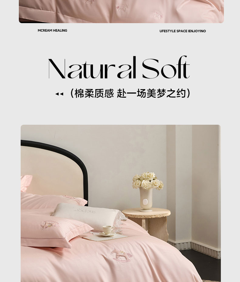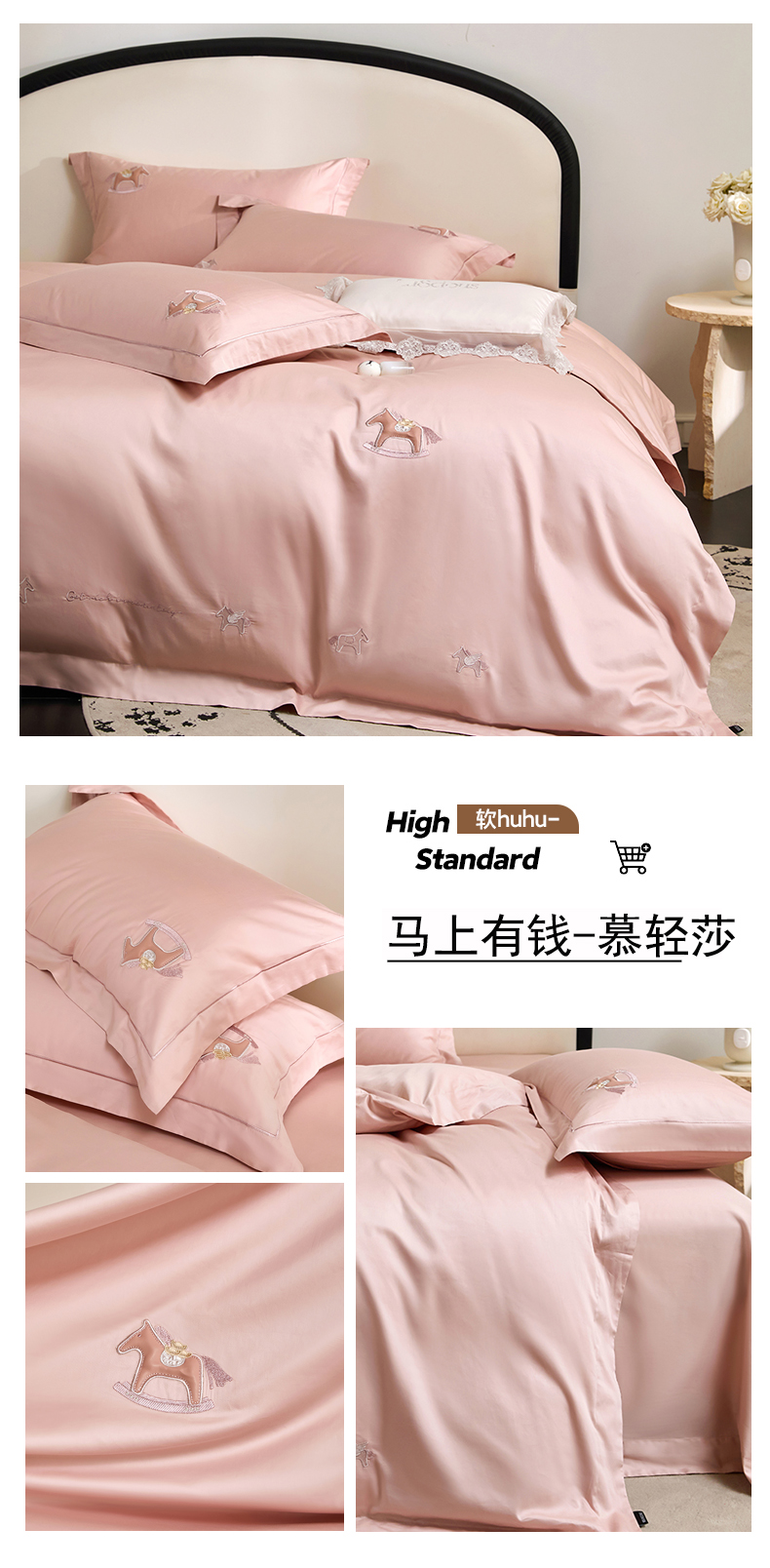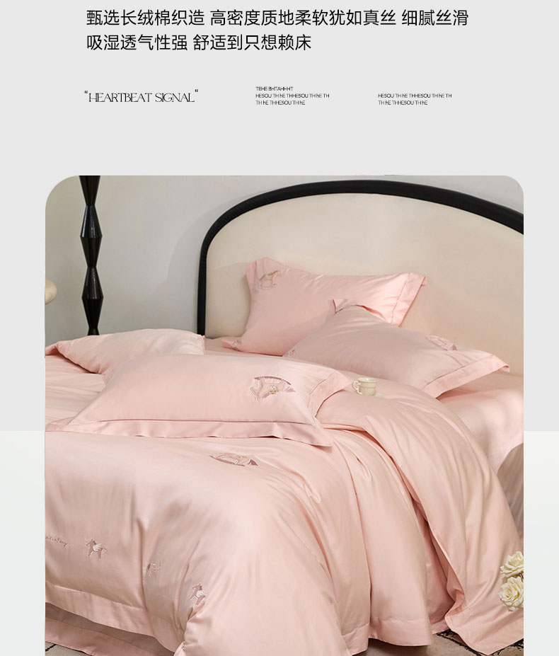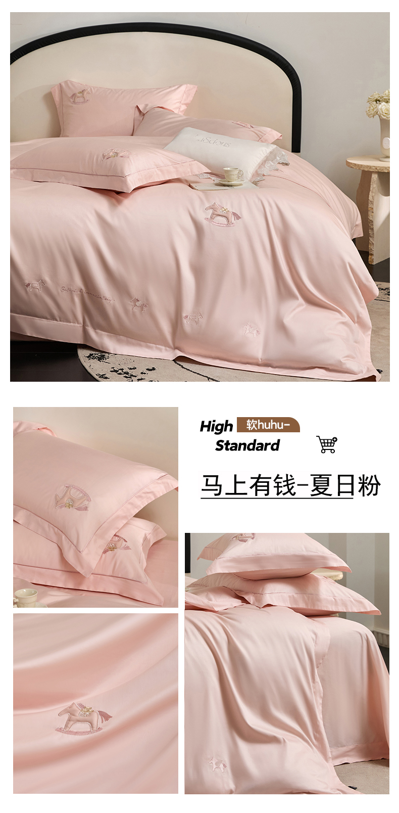 蒂爵 2026新款贡缎100支长绒棉全棉纯棉刺绣绣花四件套高端四件套-马上有钱 马上有钱-夏日粉