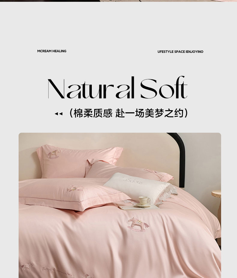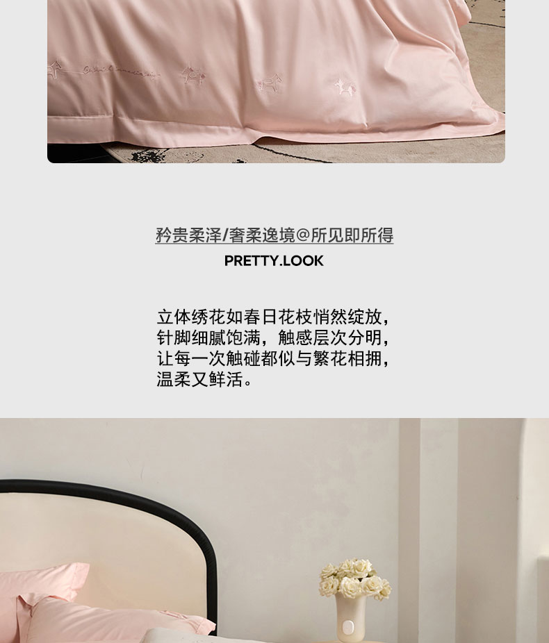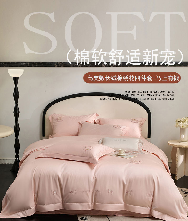 商品名称:蒂爵 2026新款贡缎100支长绒棉全棉纯棉刺绣绣花四件套高端四件套-马上有钱 马上有钱-夏日粉