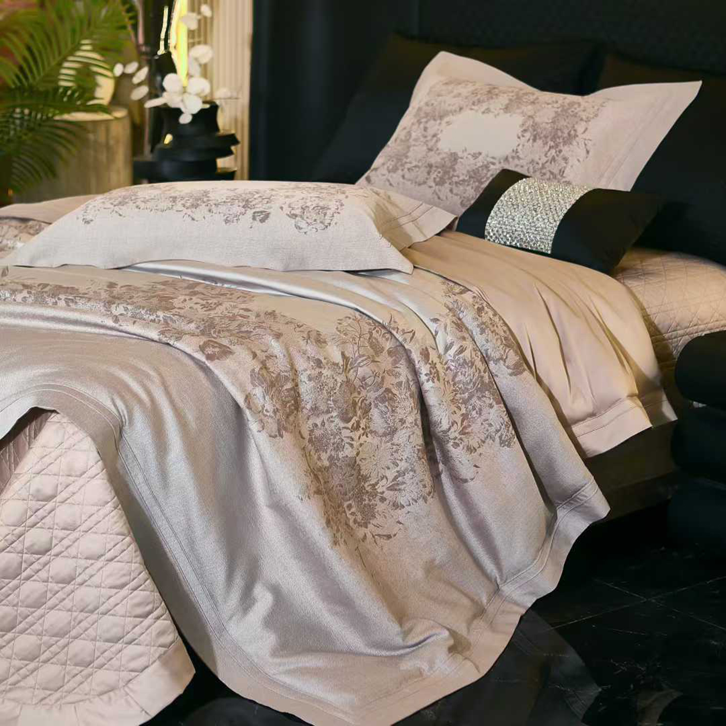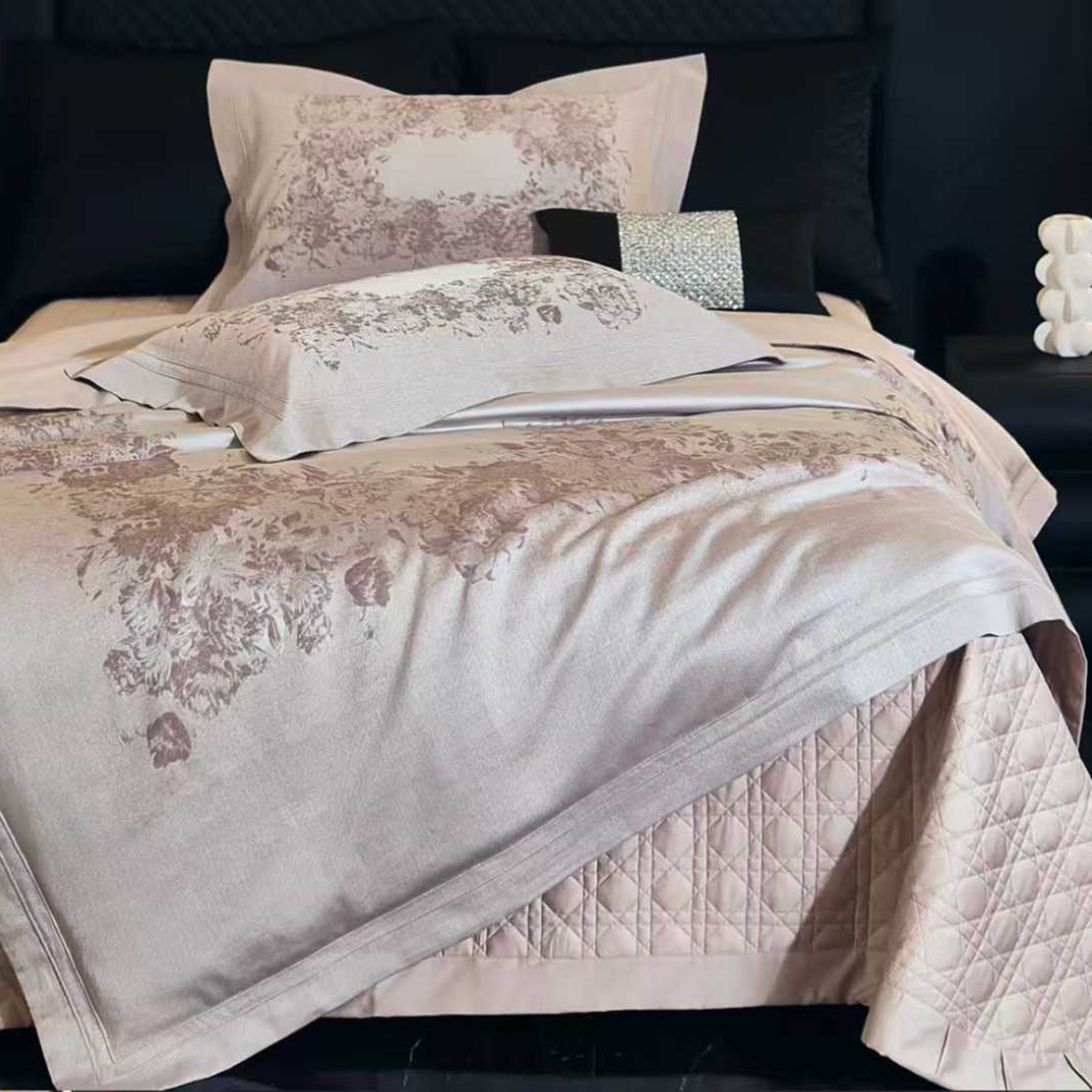 (总)edra 2026新款真丝天丝轻奢提花床盖款四件套-繁花,繁花-深灰,繁花-银灰