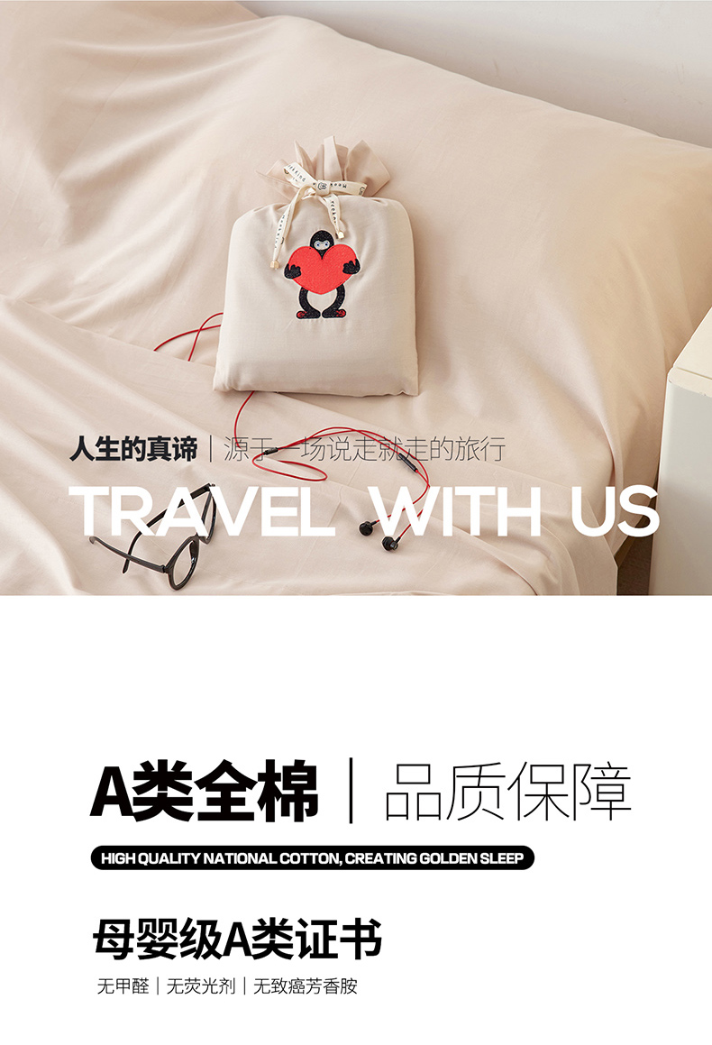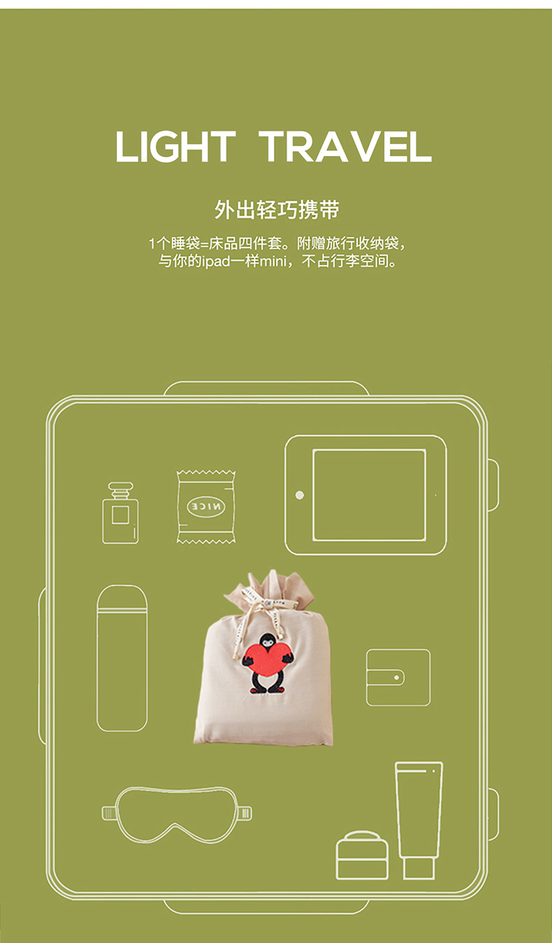 商品名称:沐珩家纺 2026新款糯感全棉定制正版卡通绣花大雁纹旅行酒店隔脏睡袋 南极企鹅