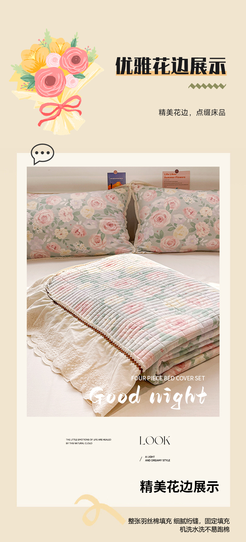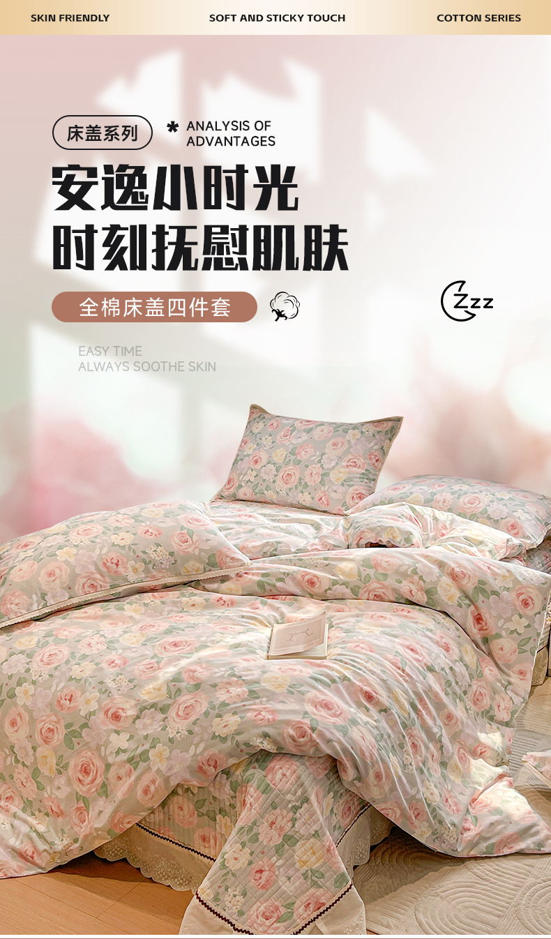 当前位置: 91家纺网 > 商品网购 > 床品套件 > 四件套 > 全棉普通四件套 > 娜朵家纺 2026新款全棉印花床盖四件套 花开朵朵