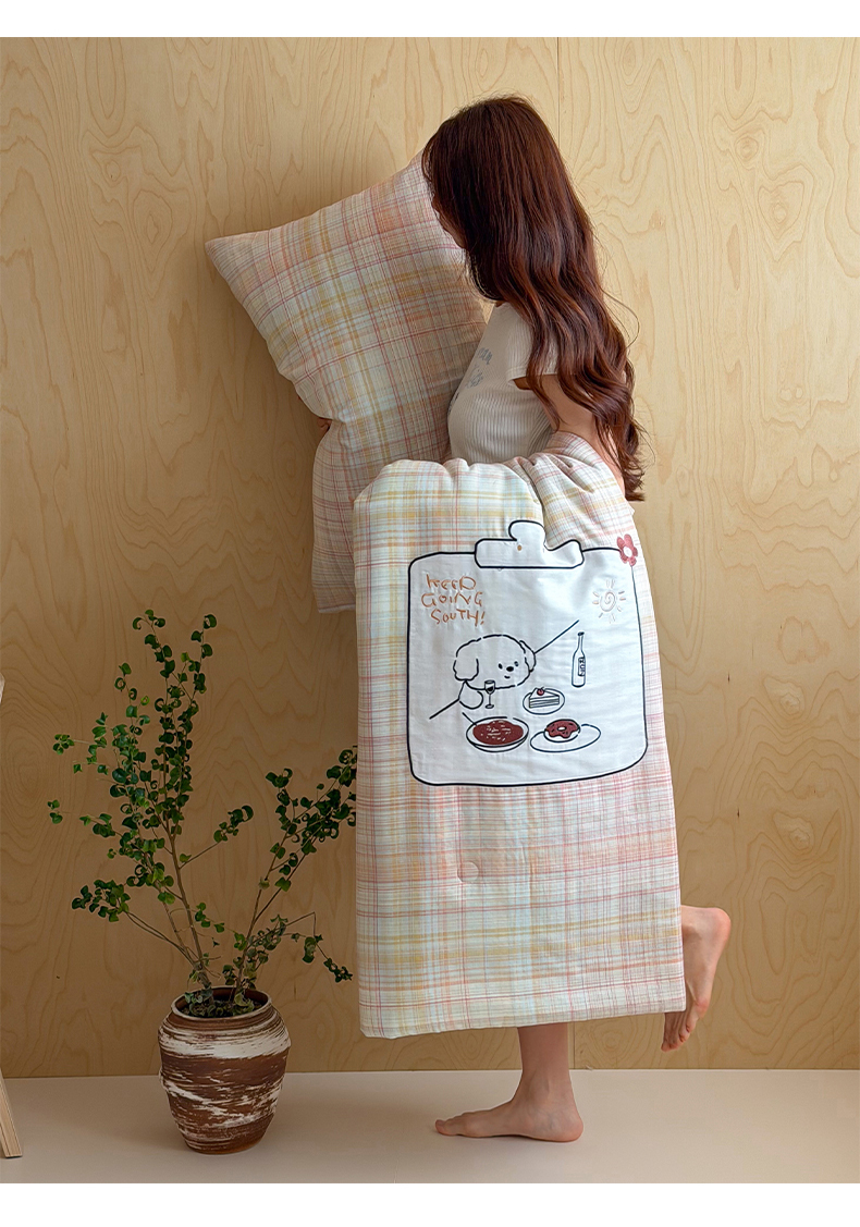 (总)一加一 2026新款全棉色织水洗棉毛巾绣大豆夏被夏凉被空调被-腊肠狗,腊肠狗-粉条,腊肠狗-海盐,腊肠狗-灰条,腊肠狗-蓝调,腊肠狗-奶白,腊肠狗-樱花