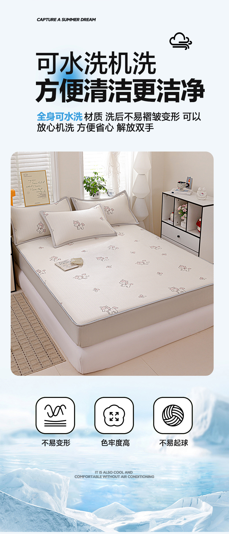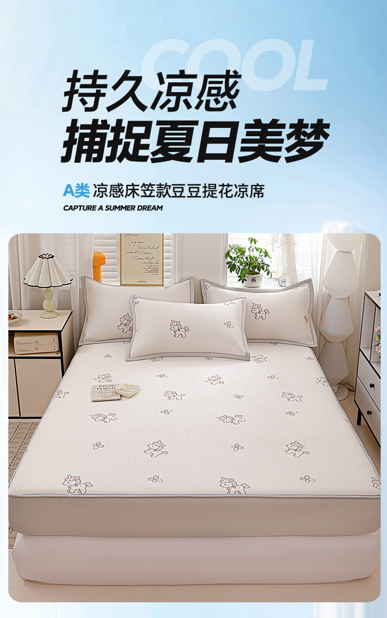 • 91家纺网 家纺一手货源 找家纺 富馨莱 2026新款PE乙纶高克重冰豆豆席凉感凉席单件席子床笠款支持一件定做尺寸学生宿舍 吉祥小马