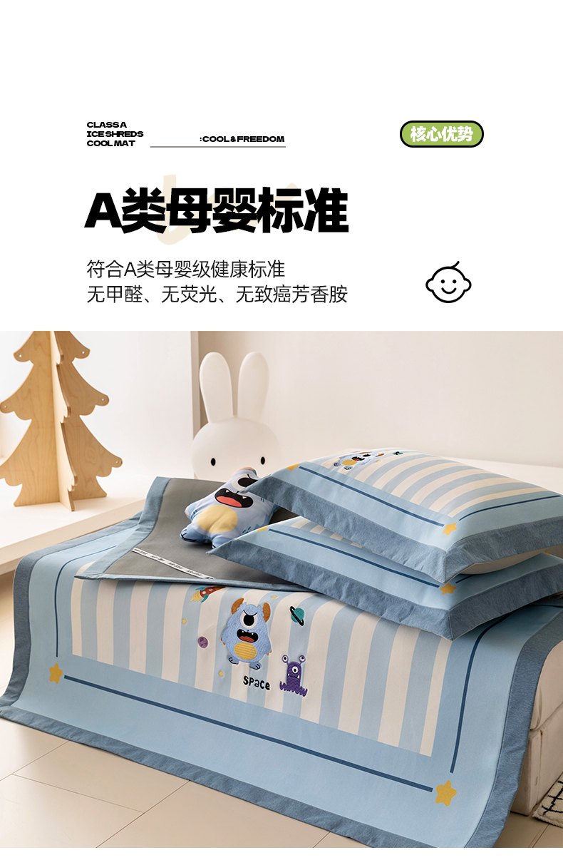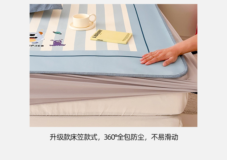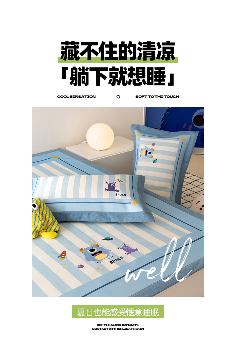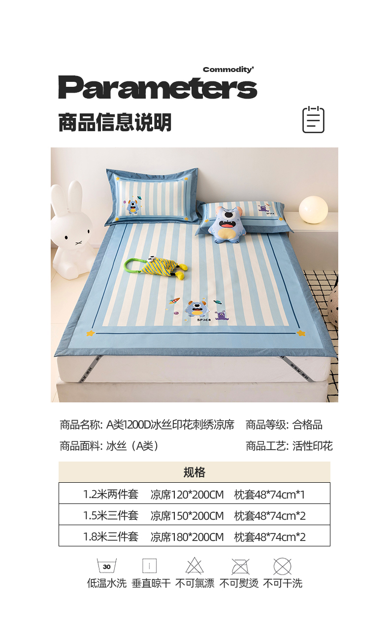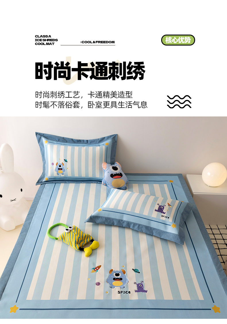 商品名称:懒猫家纺 2026新款1200D冰丝印花刺绣凉席床笠款床席款 怪兽星球-床席款