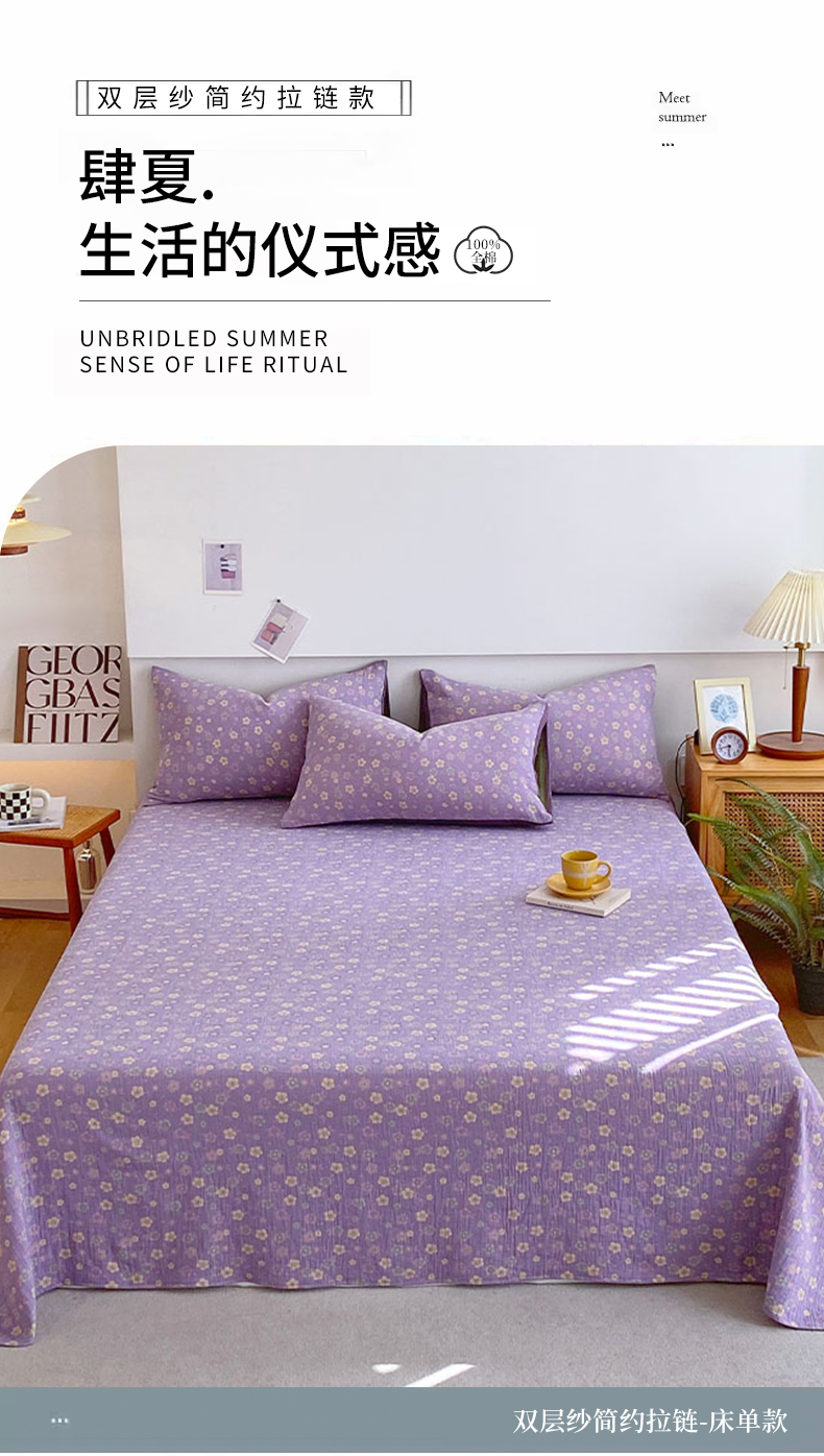 (总)春皖家纺 2026新款全棉纯棉拉链款双层纱床单单床单床单单件,百灵斯顿,绮帐-红,花漾兰,绮帐-粉,夏洛克绿,雪花飘,一丈红,春光灿烂,月临