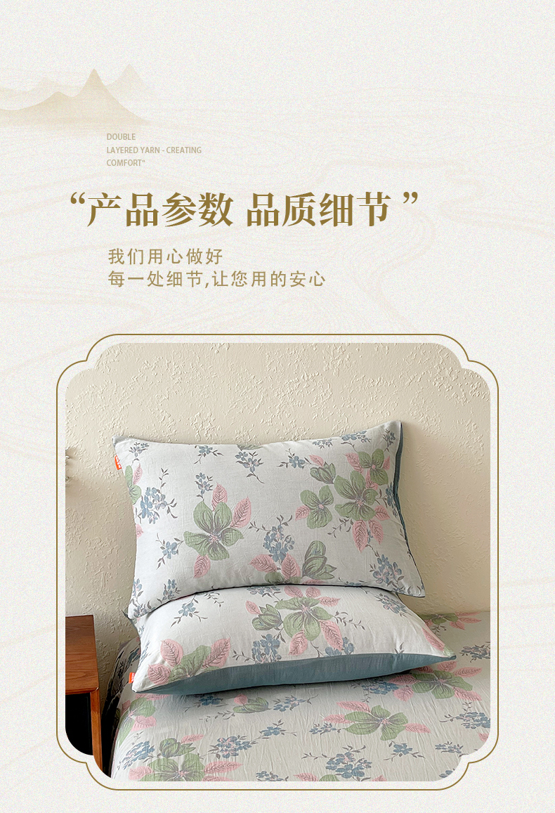 (总)春皖家纺 2026新款全棉纯棉拉链款双层纱四件套,百灵斯顿,夏洛克绿,一丈红,雪花飘,春光灿烂,绮帐-红,绮帐-粉,花漾兰,月临