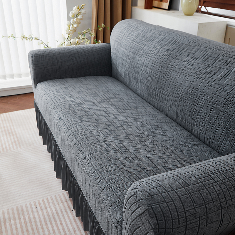 (总)飞翔家纺沙发套 2026新款素格纹裙摆沙发套