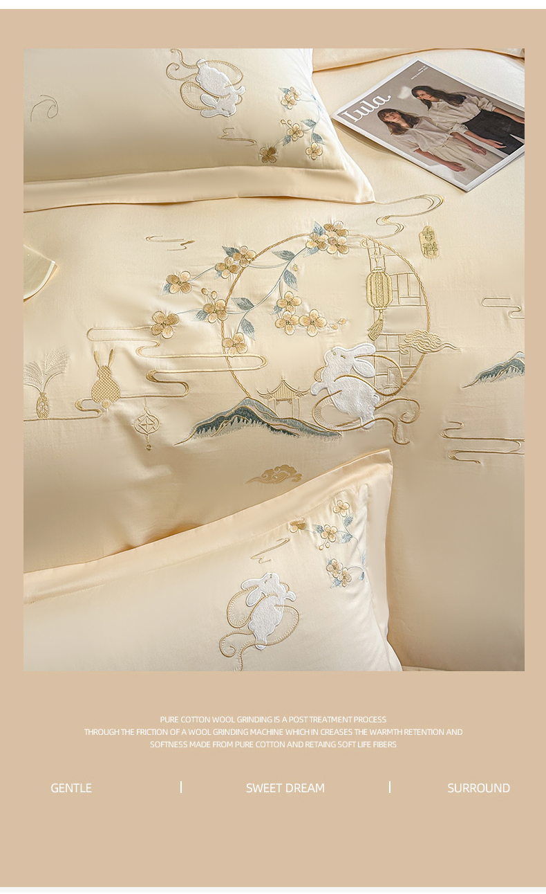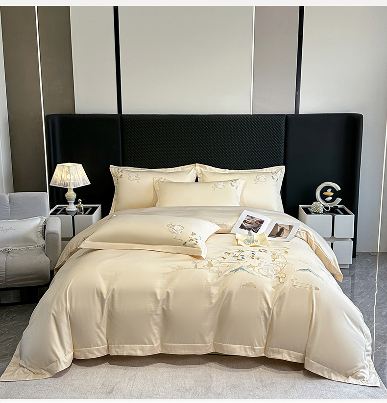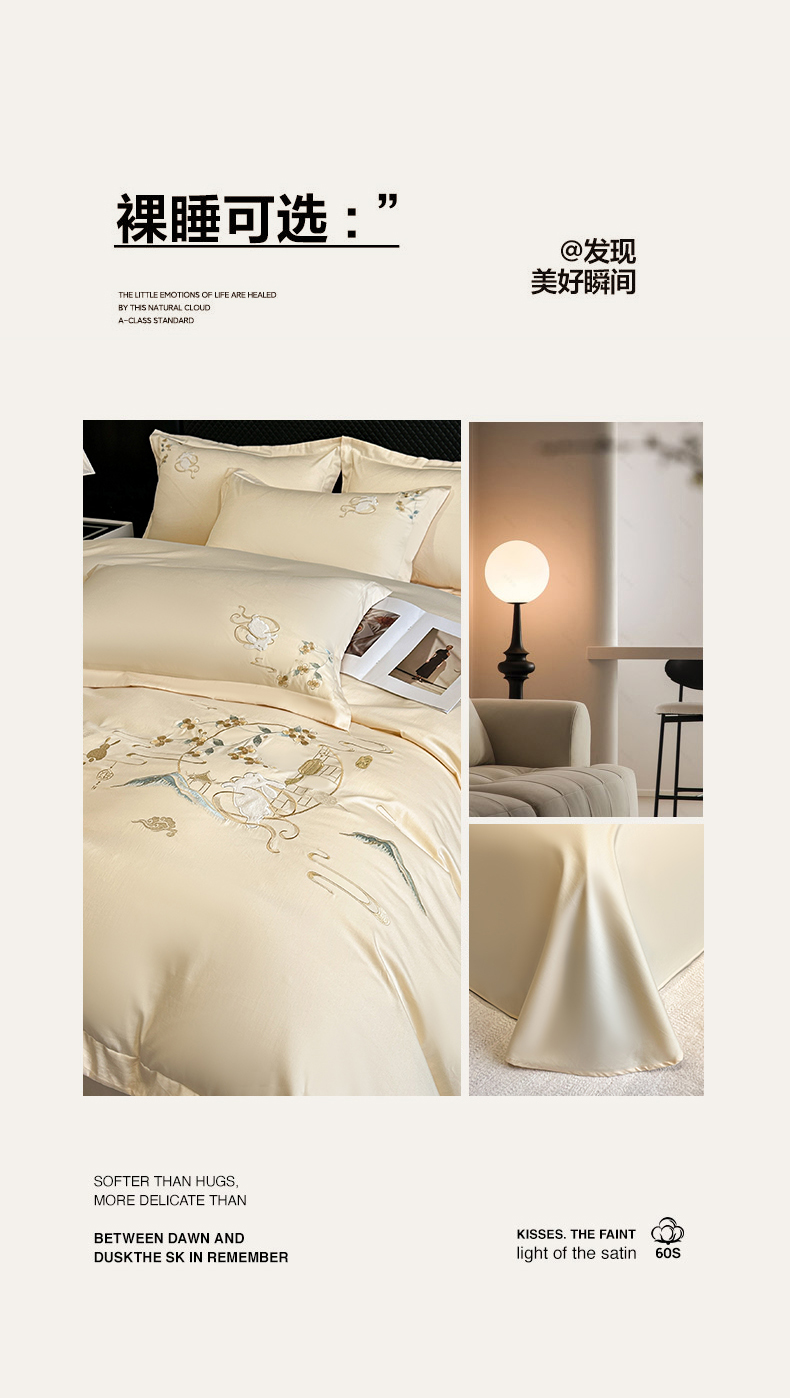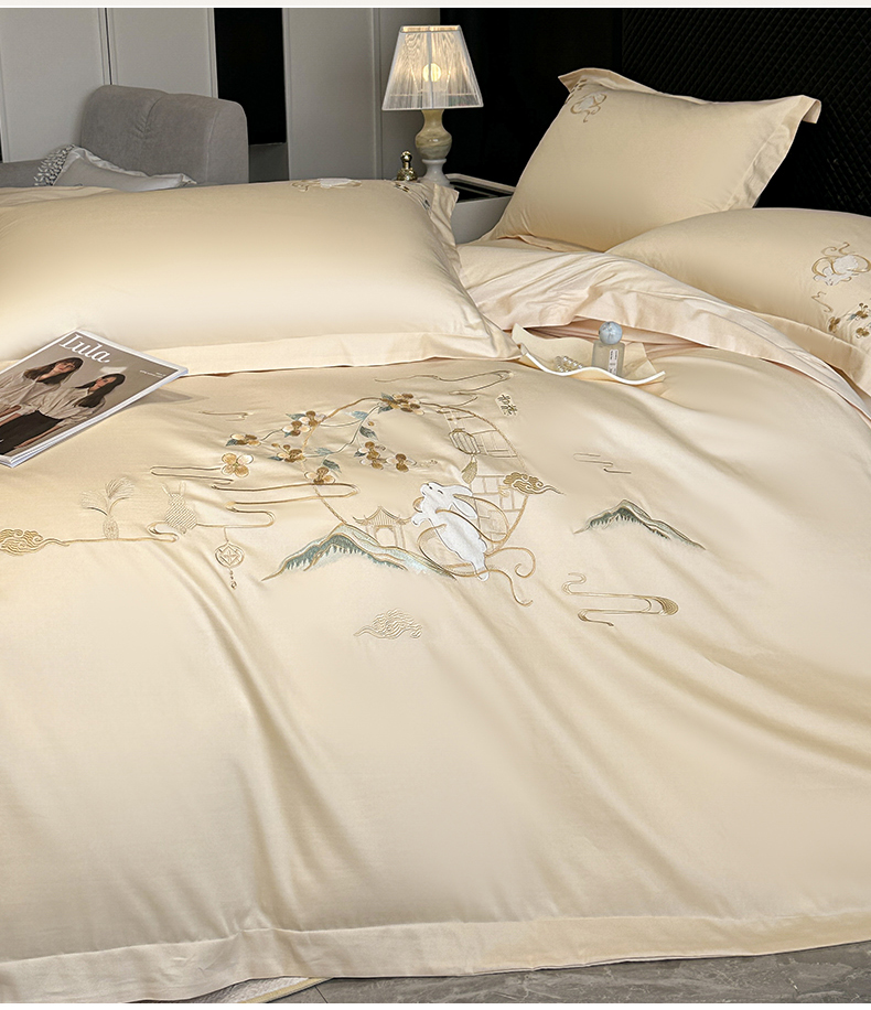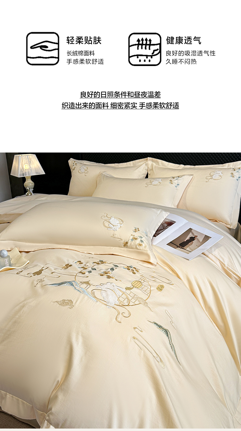 商品名称:绒掌柜家纺(品质焕新) 2026新品100S长绒棉精密贴布刺绣四件套-月夕花朝系列-版权产品-礼盒装 奶油米