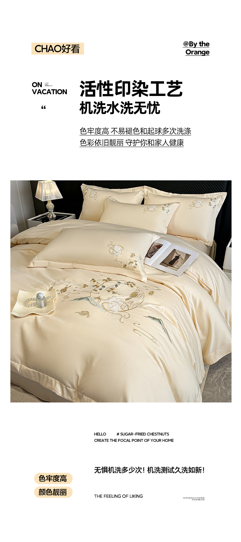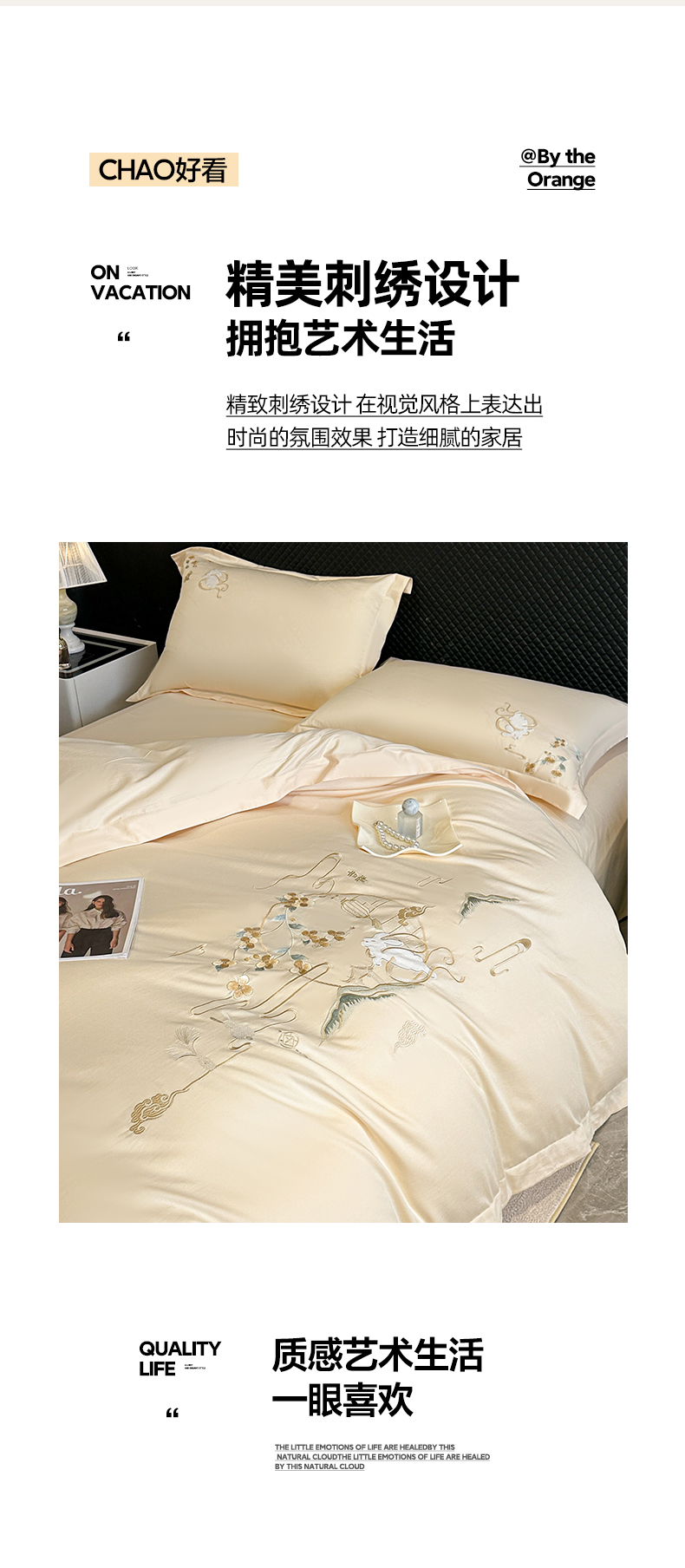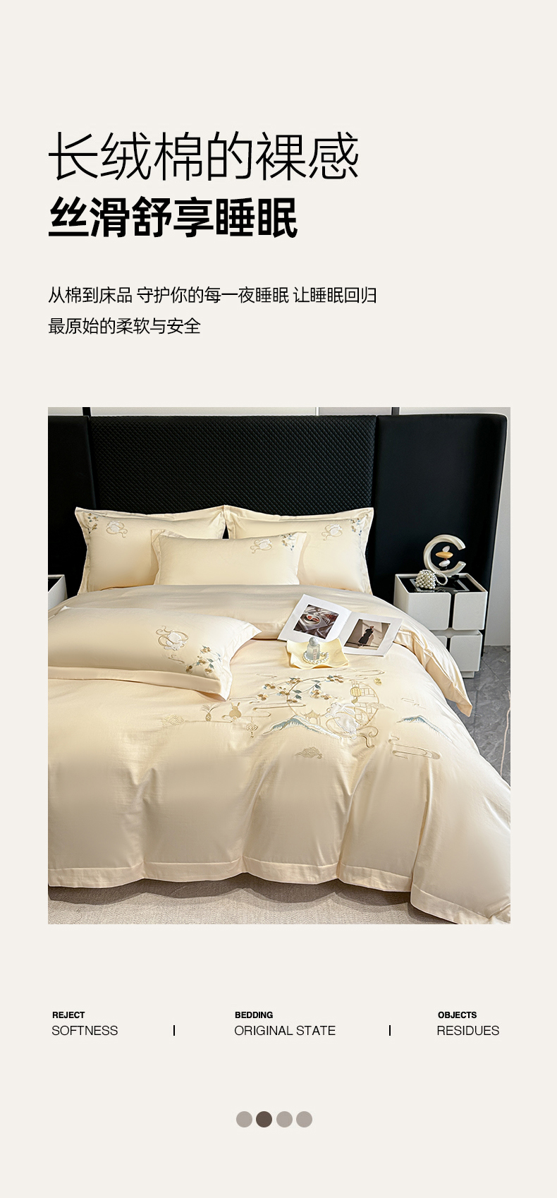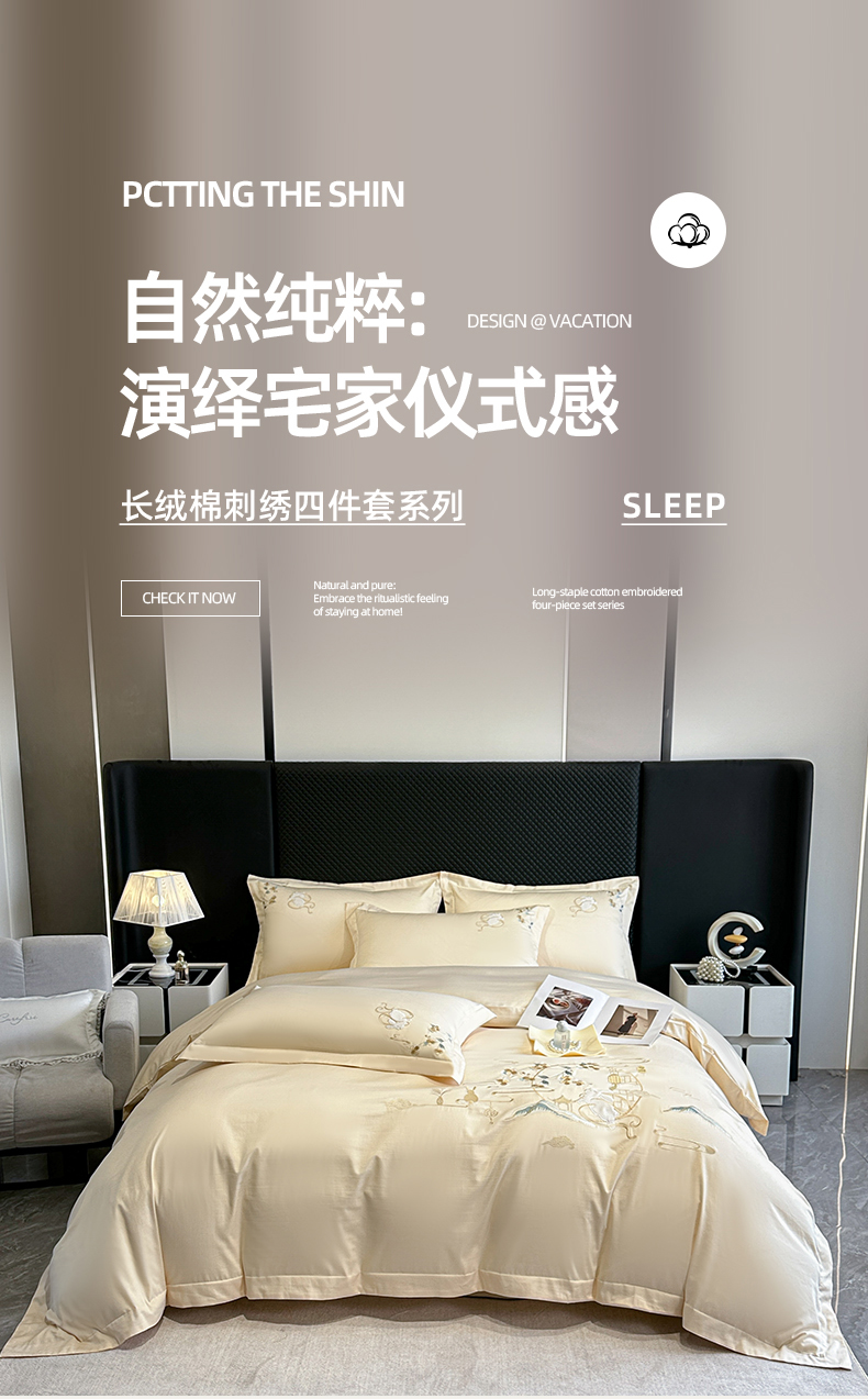 商品名称:绒掌柜家纺(品质焕新) 2026新品100S长绒棉精密贴布刺绣四件套-月夕花朝系列-版权产品-礼盒装 奶油米
