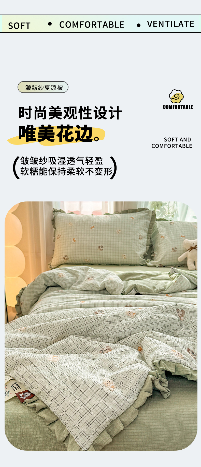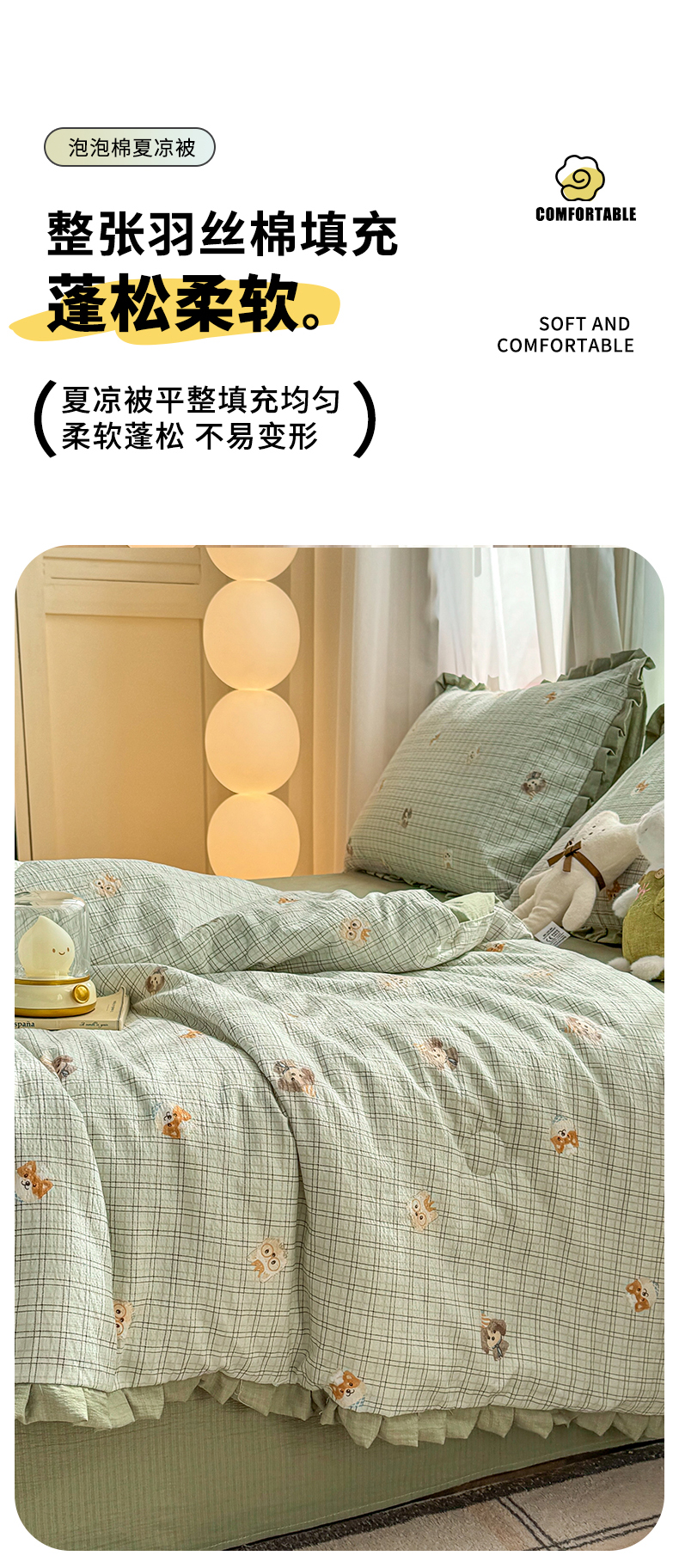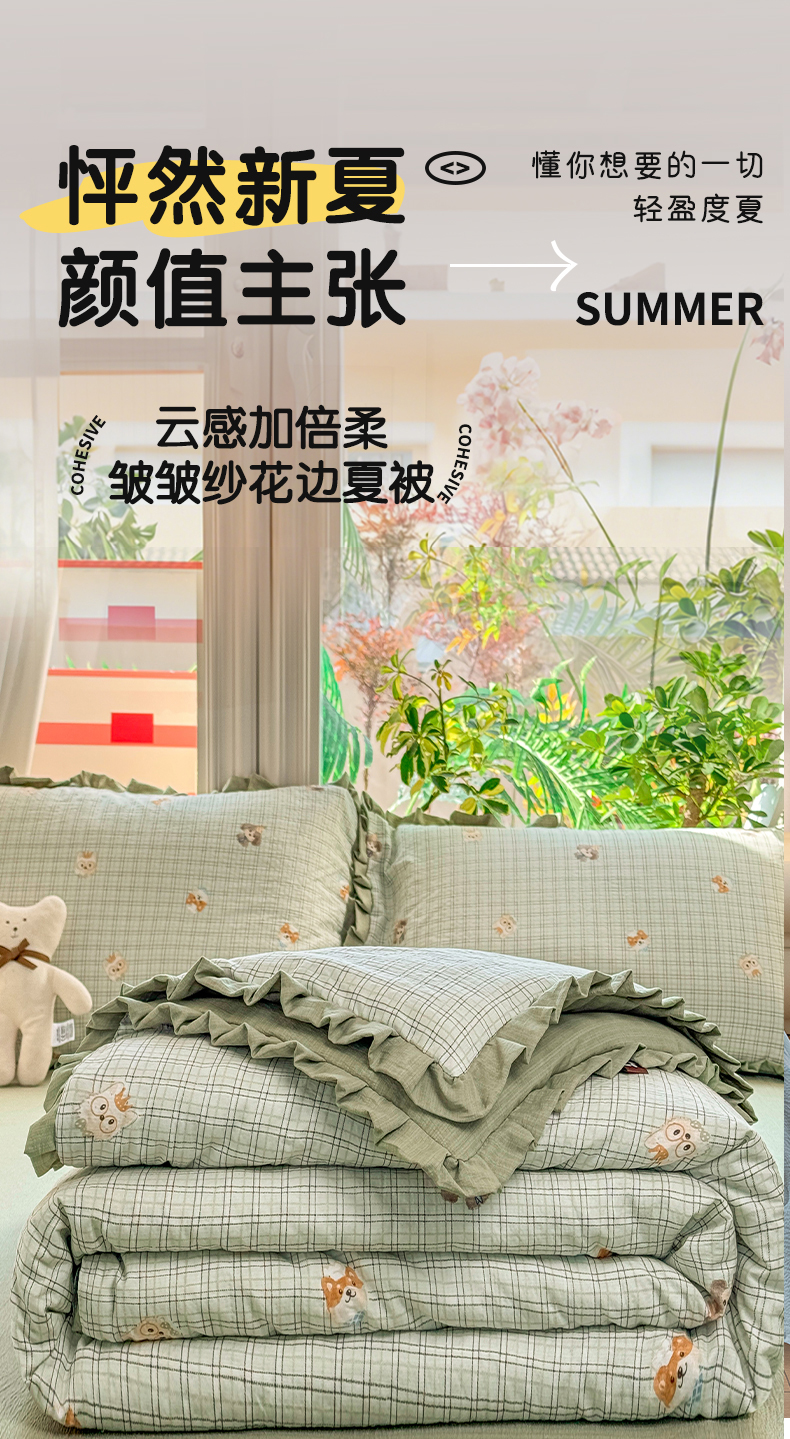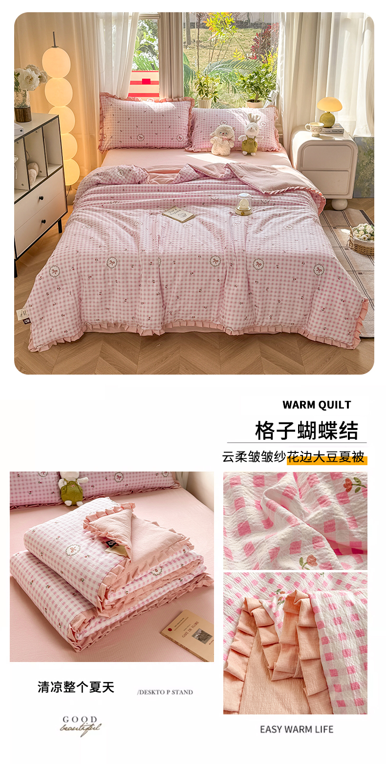 • 91家纺网 家纺一手货源 找家纺 丽美人家纺 2026新款皱皱纱花边夏被被夏凉被空调被 HB格仔萌宠