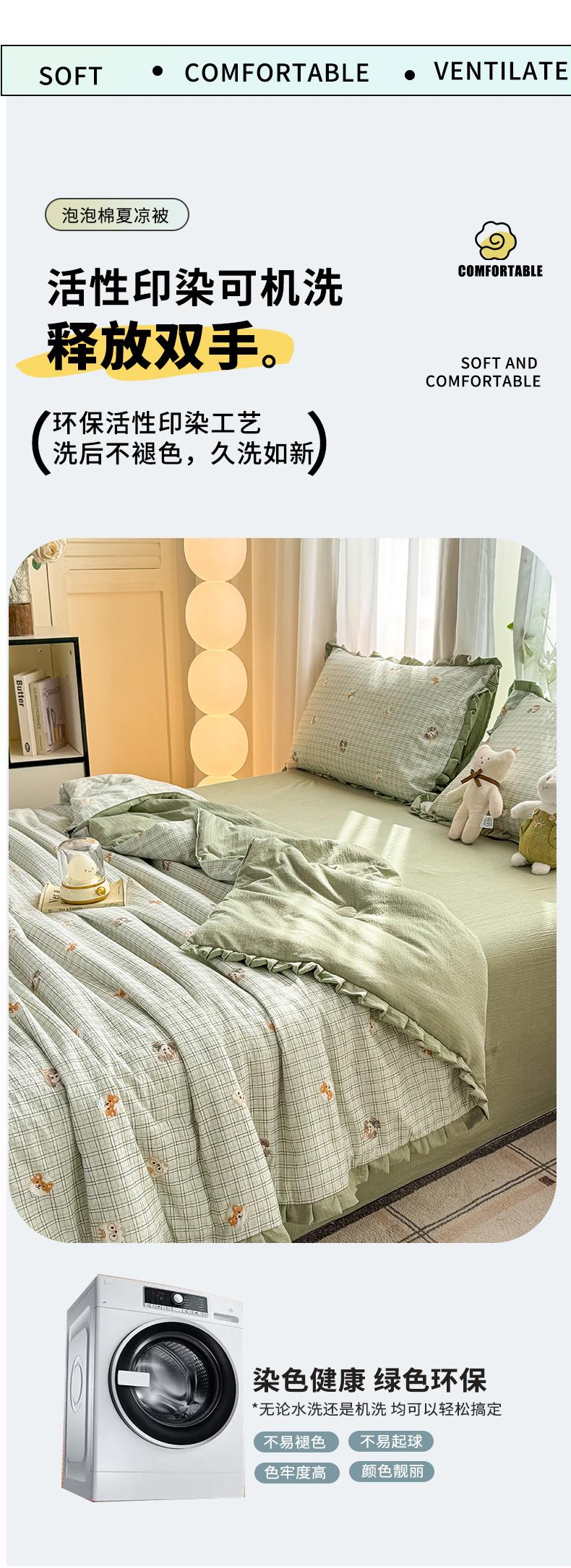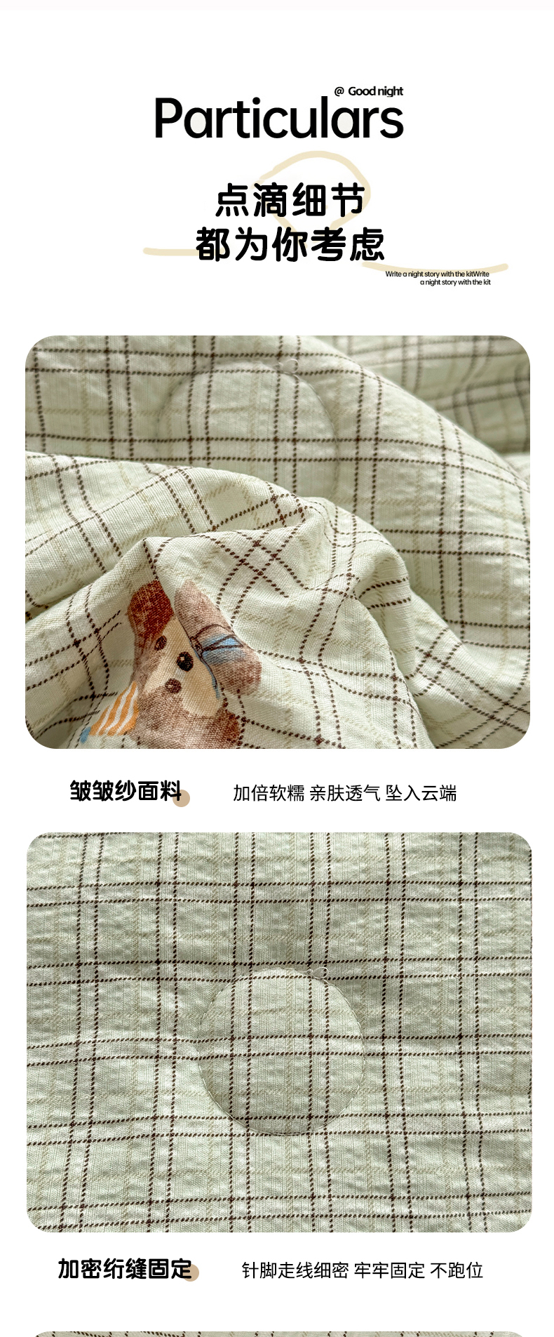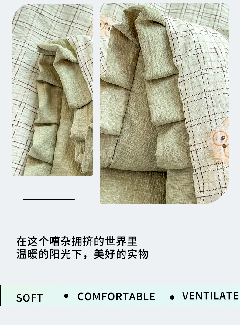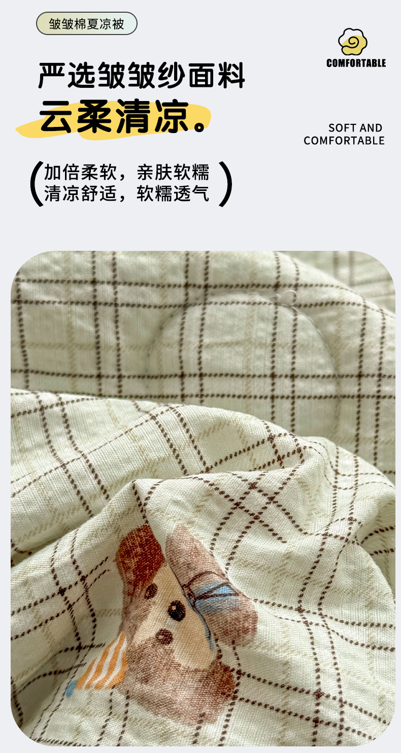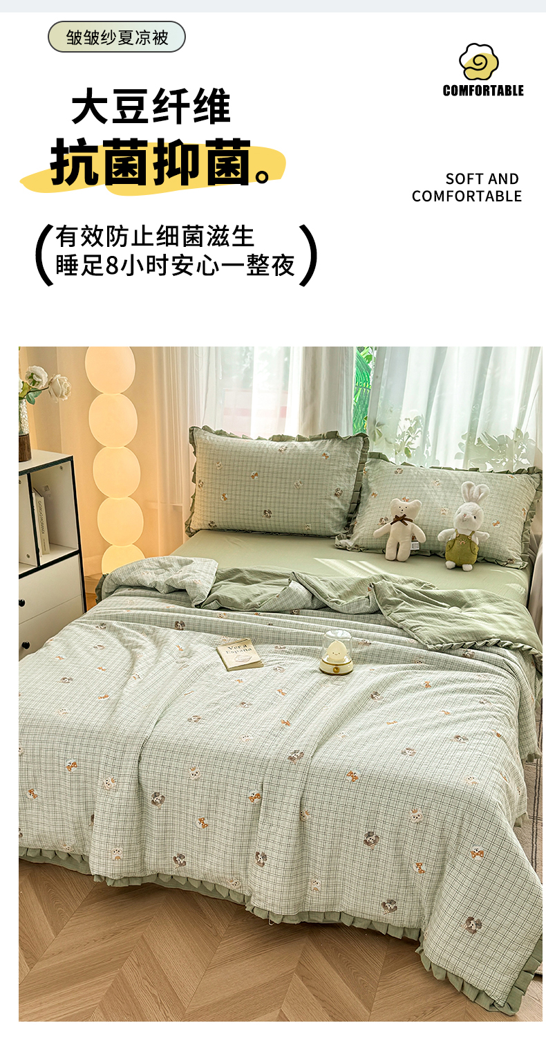 • 91家纺网 家纺一手货源 找家纺 丽美人家纺 2026新款皱皱纱花边夏被被夏凉被空调被 HB格仔萌宠