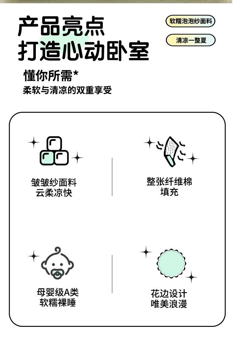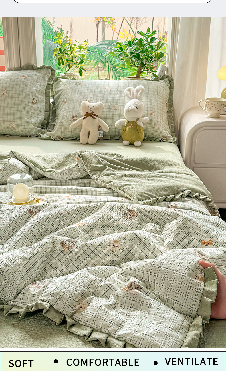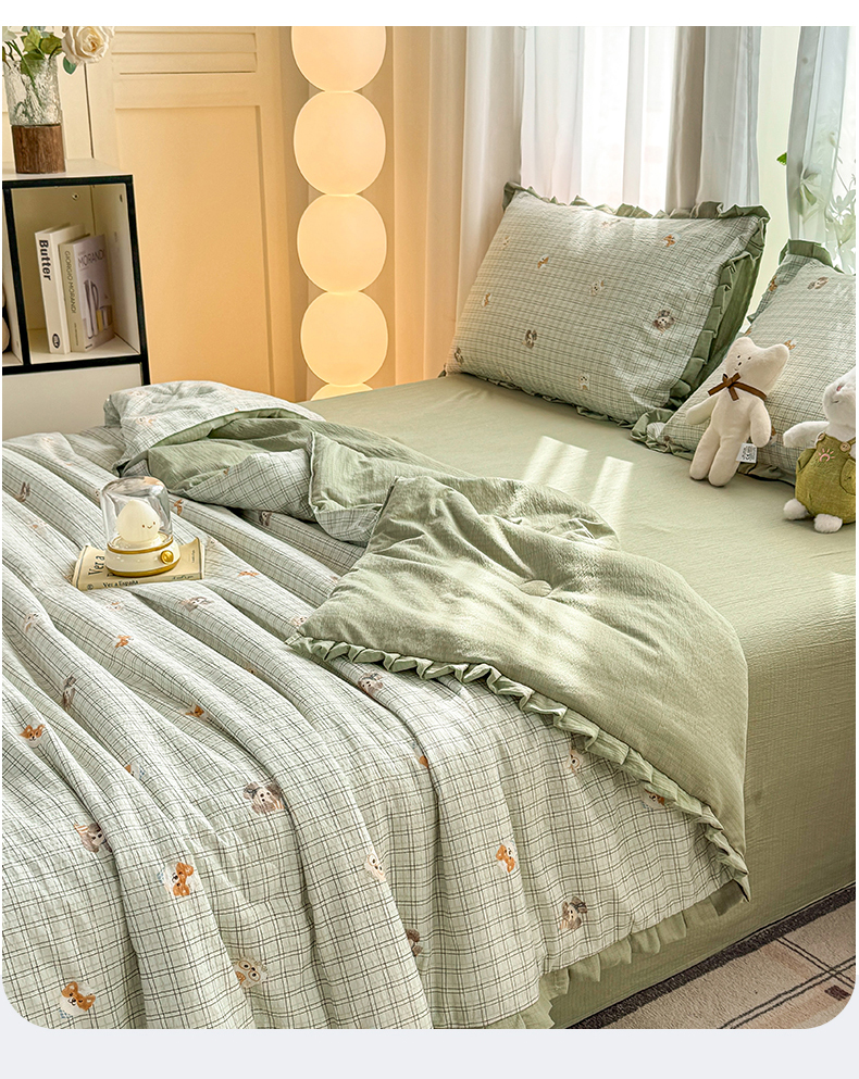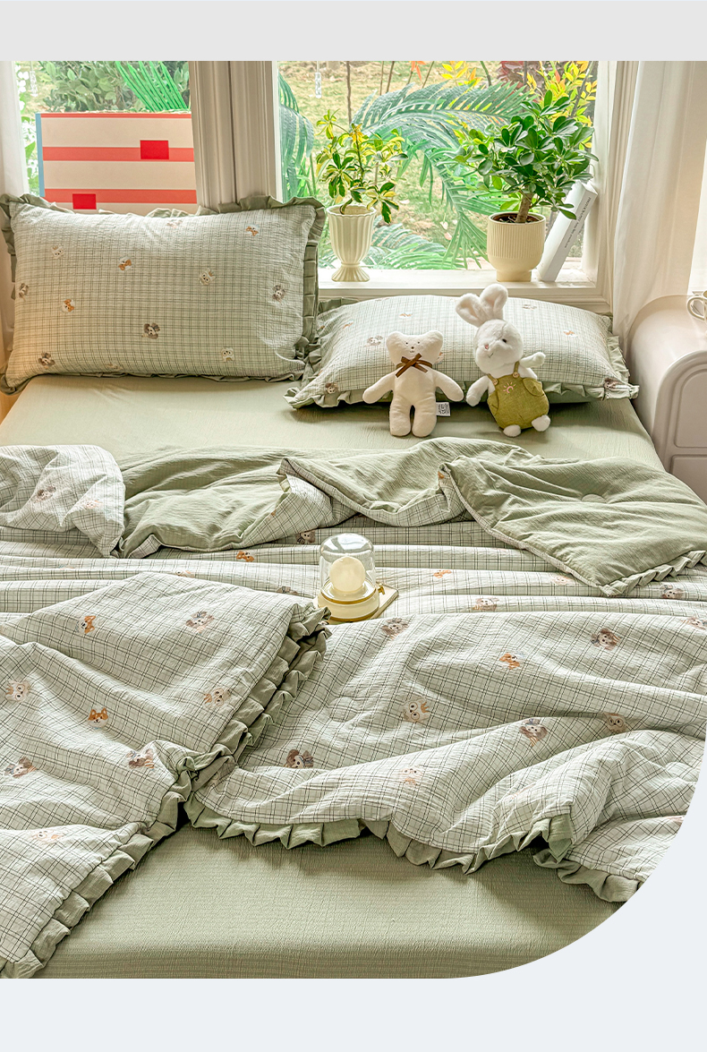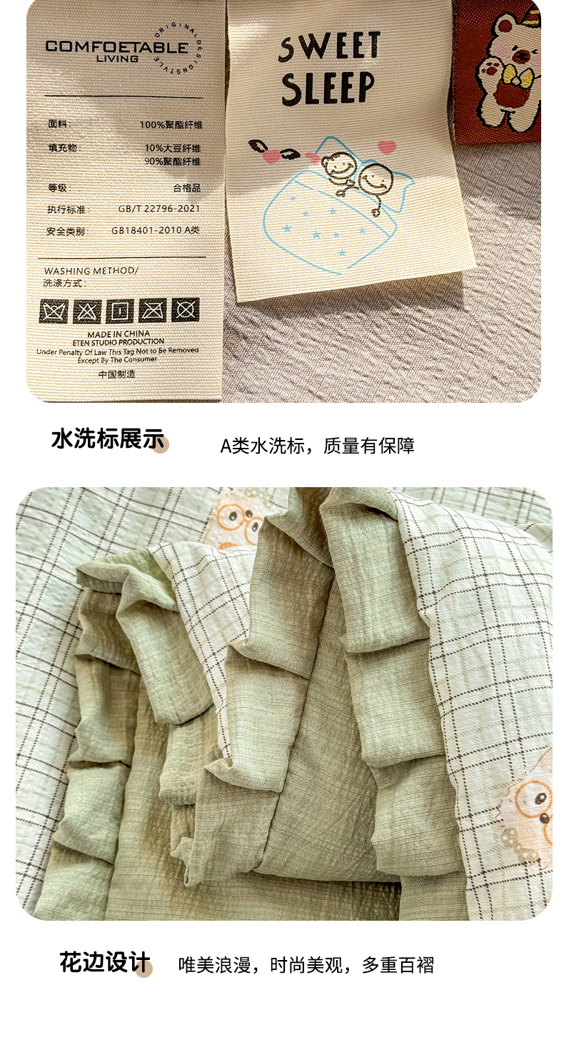 • 91家纺网 家纺一手货源 找家纺 丽美人家纺 2026新款皱皱纱花边夏被被夏凉被空调被 HB格仔萌宠