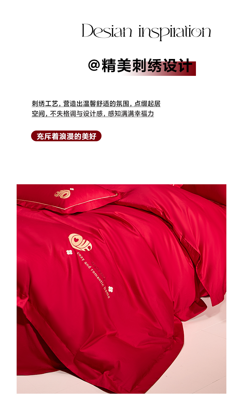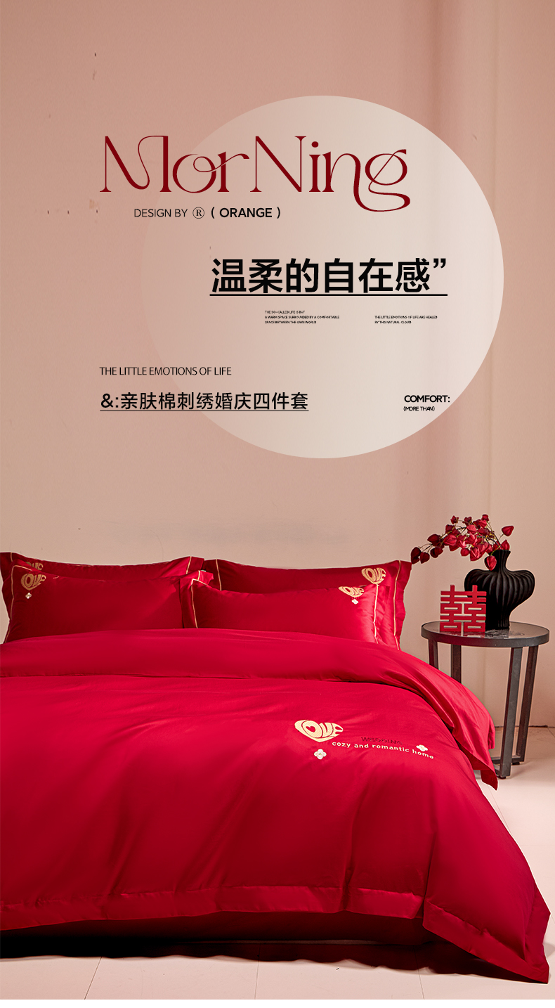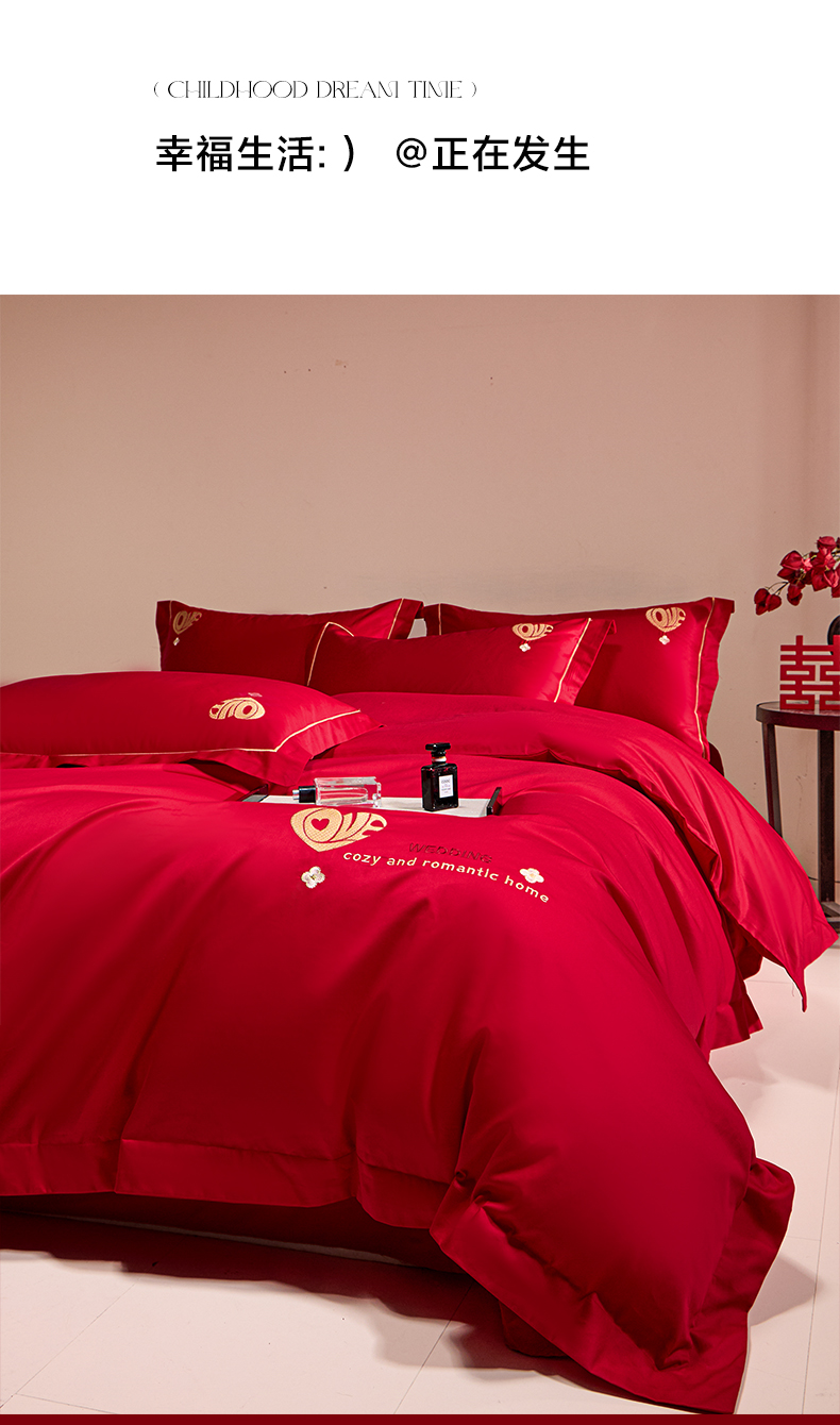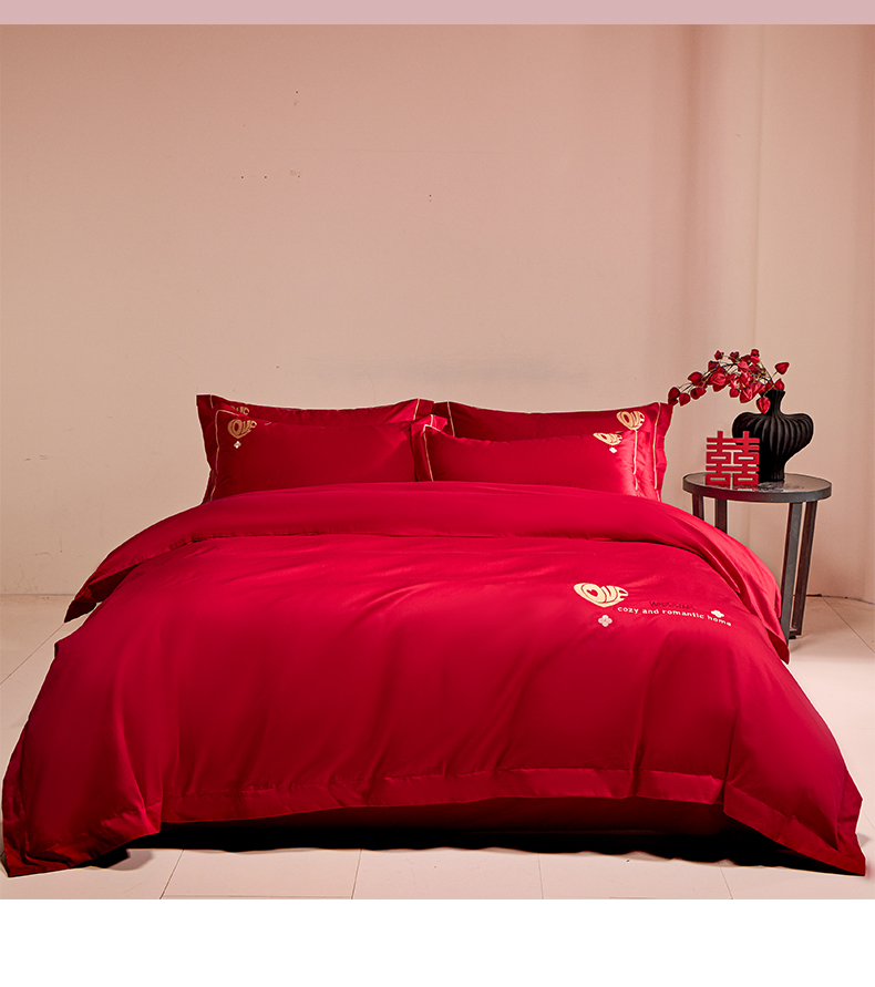 当前位置: 91家纺网 > 商品网购 > 床品套件 > 四件套 > 婚庆四件套 > 欧乐蒂 2026新款亲肤棉简约刺绣婚庆四件套 喜爱