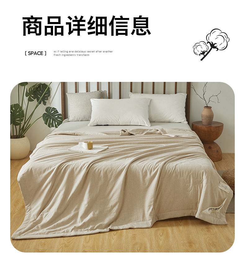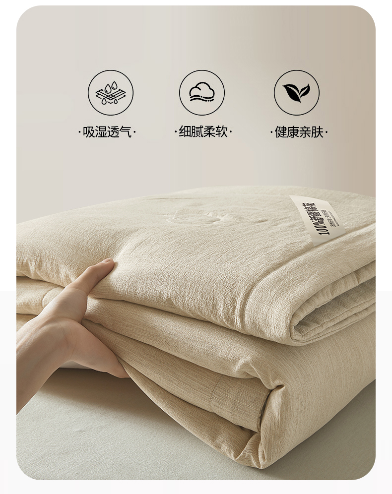 商品名称:招财星家纺 2026新款纯色棉麻100%新疆棉花夏被棉花被夏凉被空调被(带质检报告买家秀) 棉麻-浅咖