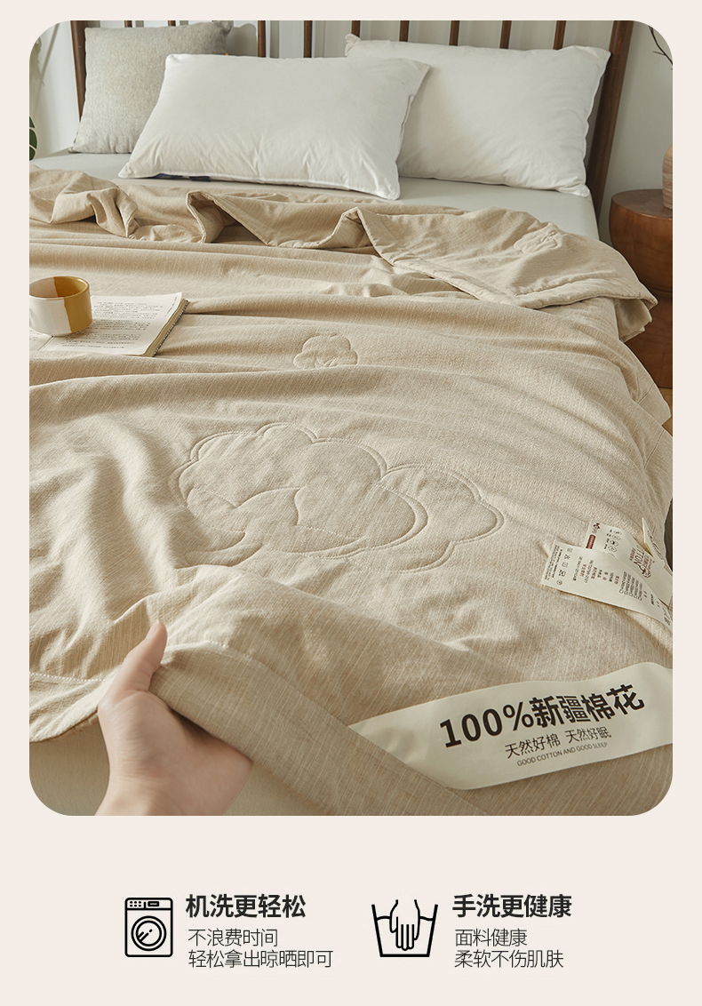 被子 > 夏被 > 招财星家纺 2026新款纯色棉麻100%新疆棉花夏被棉花被夏凉被空调被(带质检报告买家秀) 棉麻-浅咖