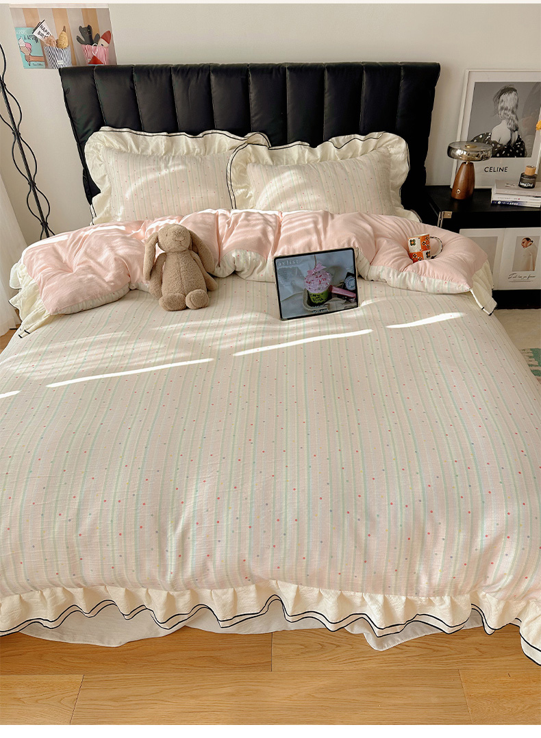 (总)韩都家居 2026春夏新款双层纱皱皱纱韩系清新风四件套