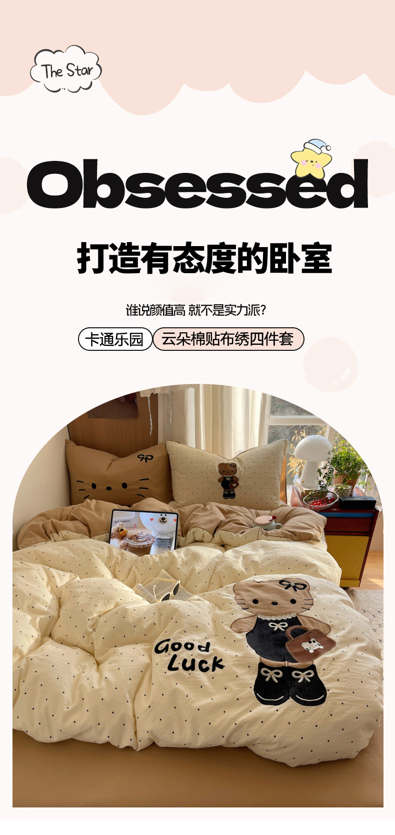 当前位置: 91家纺网 > 商品网购 > 床品套件 > 四件套 > 其它四件套 > 沐慕 2026新款大贴布绣云朵棉四件套 Coco小姐