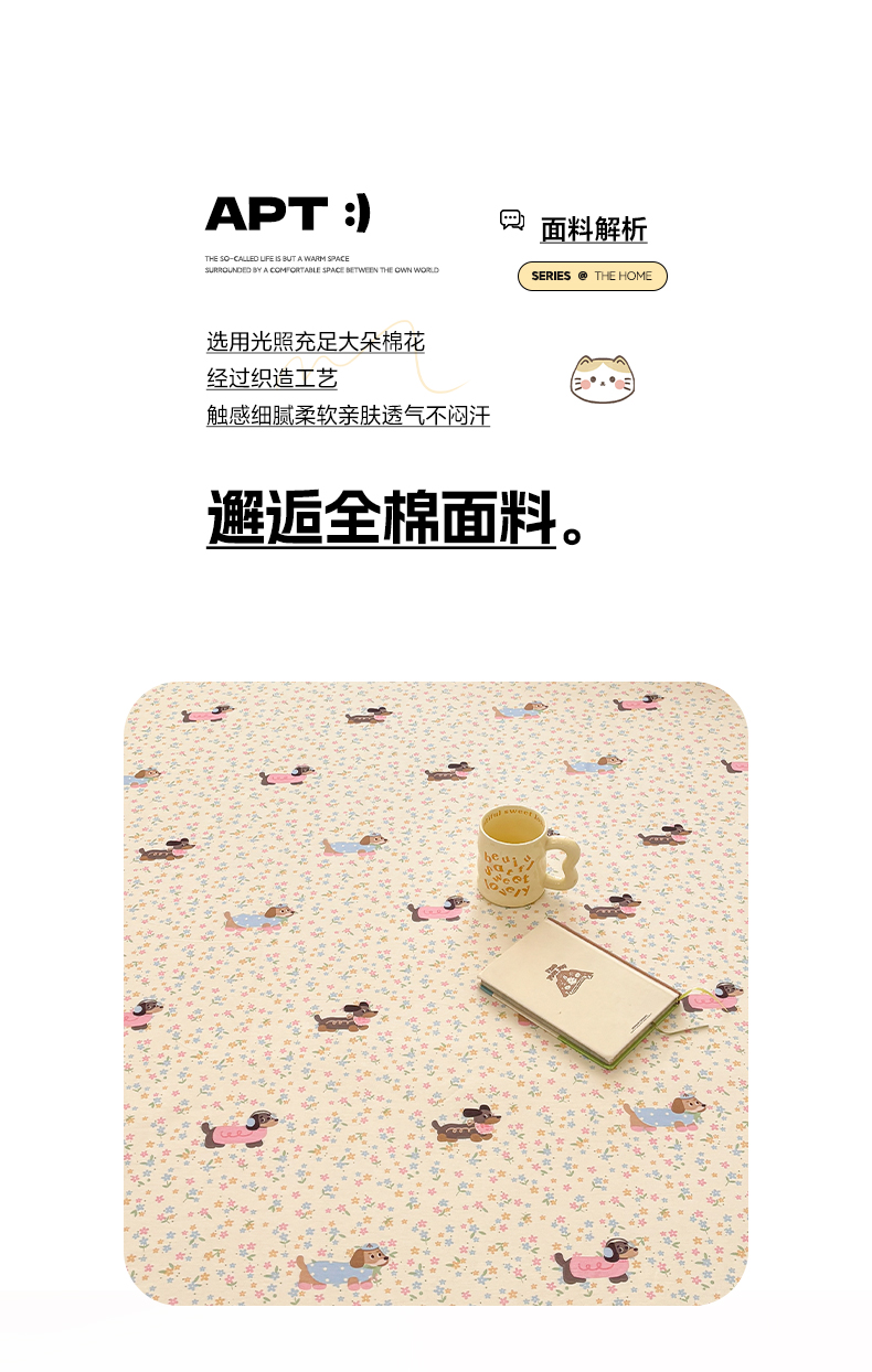 (总)雅居纺家纺 2026新款全棉纯棉单床单床笠枕套单件单品系列,单品 HI 小狗,单品 斑点狗,单品 花园秘境,单品 可爱小猫,单品 快乐小猫,单品 趣多猫,单品 碎花腊肠狗,单品 贪睡猫猫