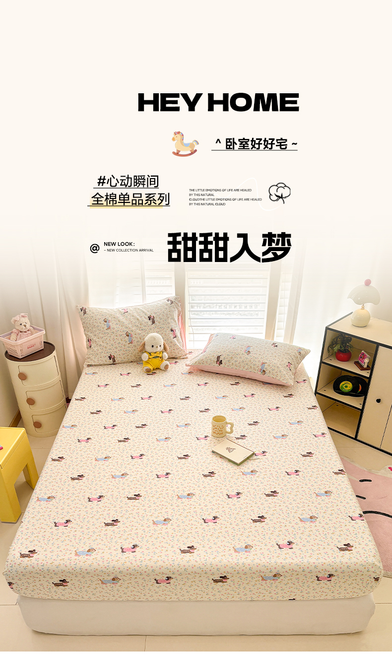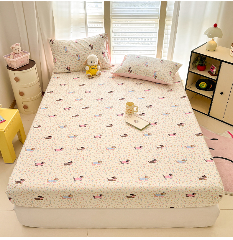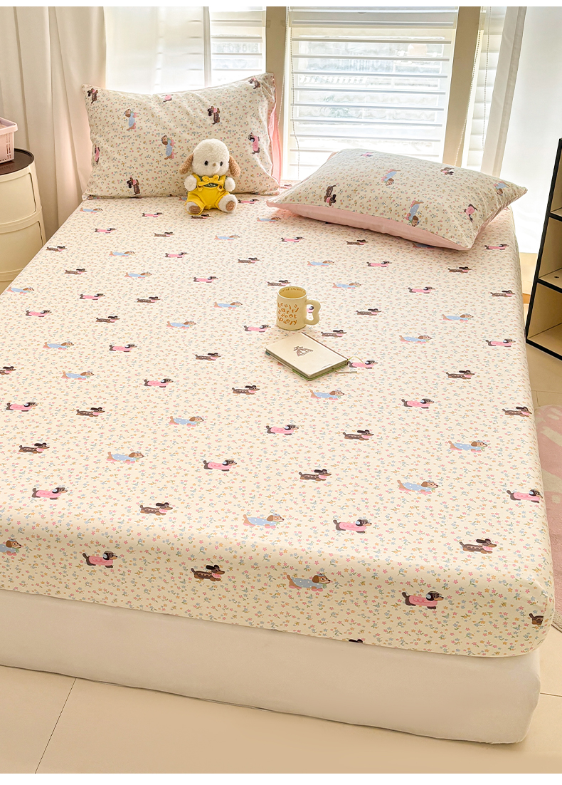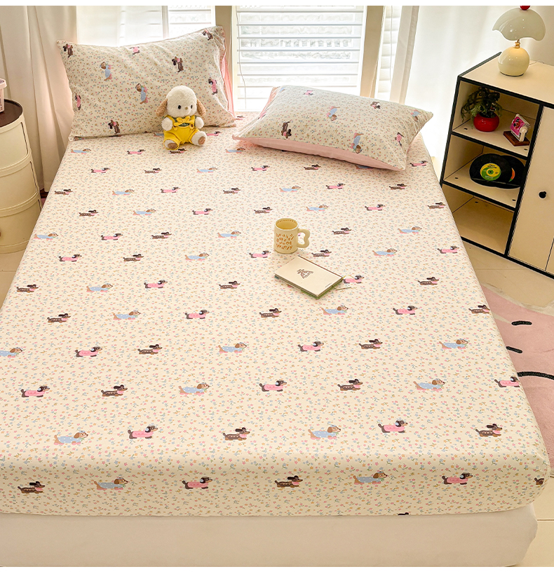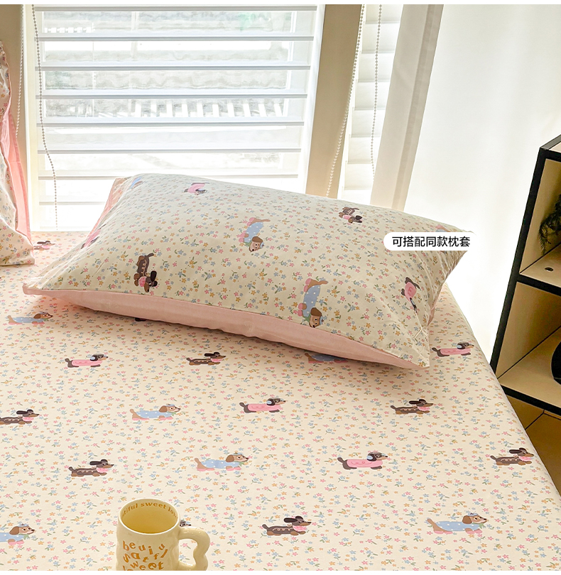 • 91家纺网 家纺一手货源 找家纺 雅居纺家纺 2026新款全棉纯棉单床单床笠枕套单件单品系列 单品 碎花腊肠狗