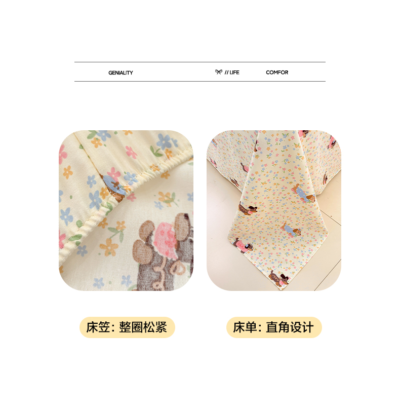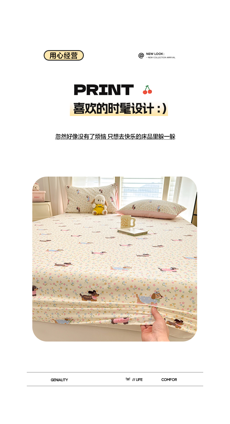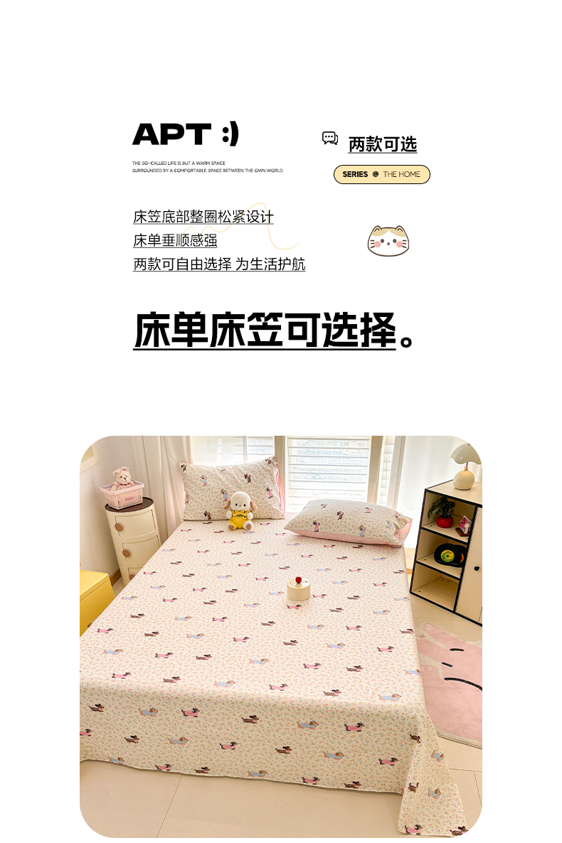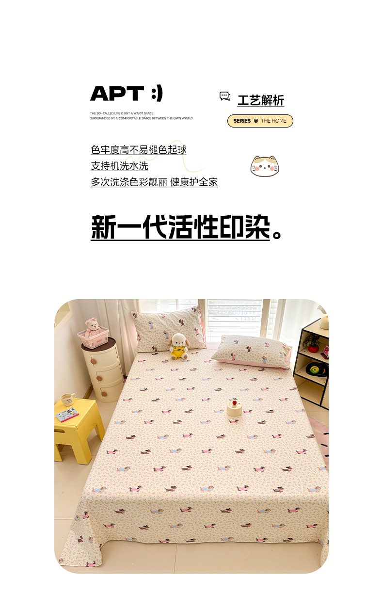 • 91家纺网 家纺一手货源 找家纺 雅居纺家纺 2026新款全棉纯棉单床单床笠枕套单件单品系列 单品 碎花腊肠狗