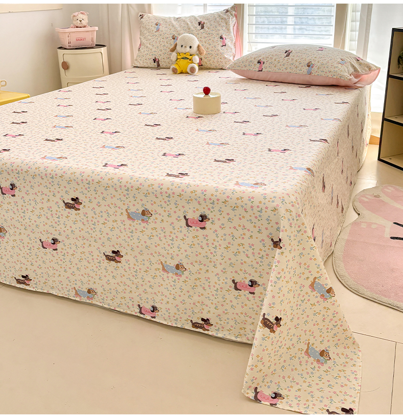 当前位置: 91家纺网 > 商品网购 > 床上用品 > 床单 > 雅居纺家纺 2026新款全棉纯棉单床单床笠枕套单件单品系列 单品 碎花腊肠狗