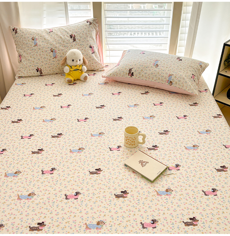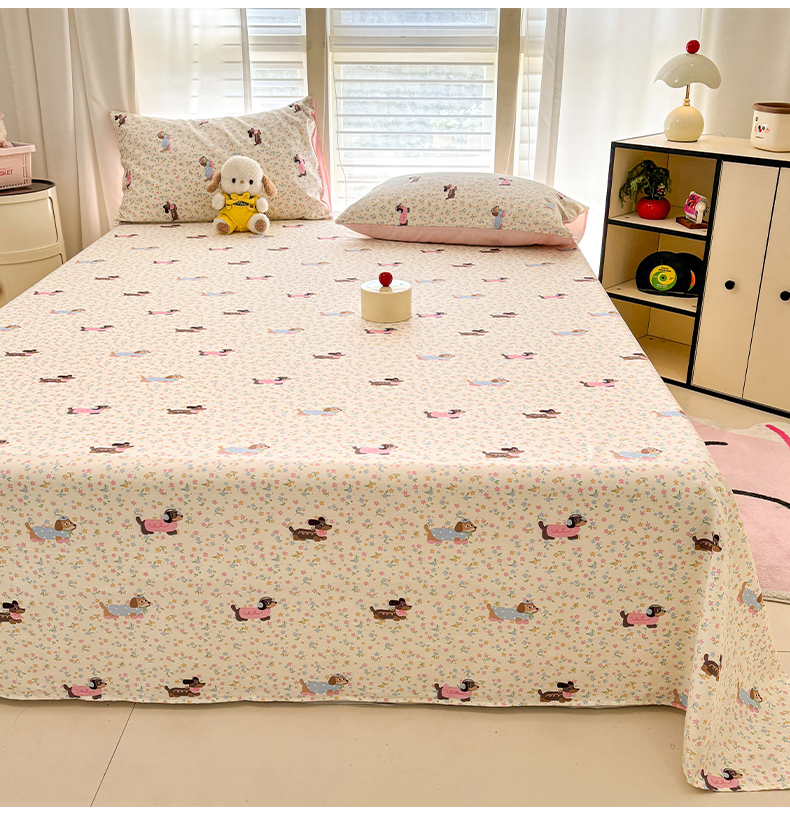 雅居纺家纺 2026新款全棉纯棉单床单床笠枕套单件单品系列 单品 碎花腊肠狗