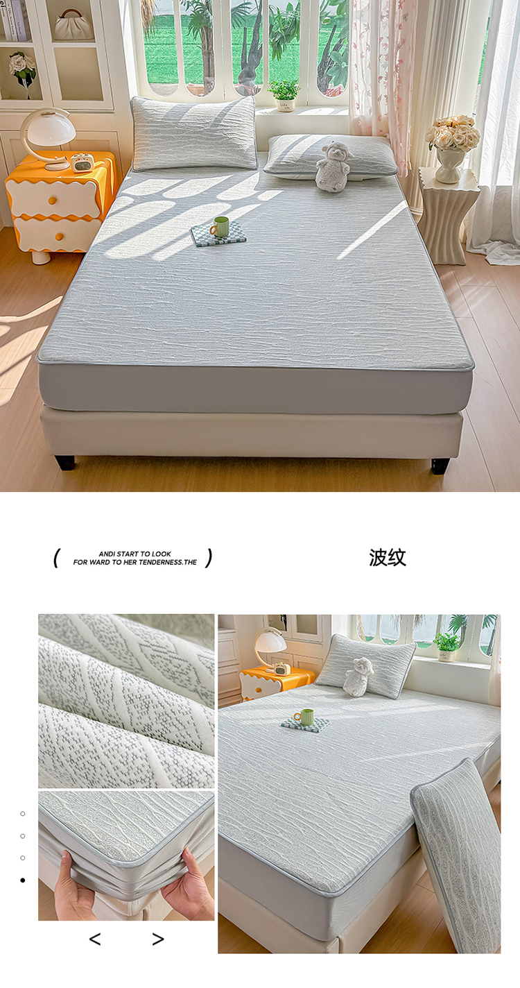 (总)小萌虎 2025新款冰豆豆凉席 床笠款,粉玉,果绿,灰色,咖色,浅蓝,深蓝