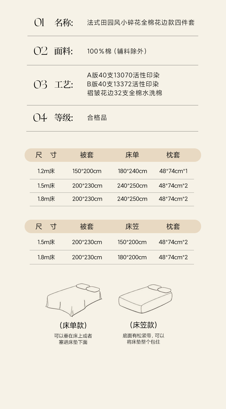 商品名称:(总)艾咪-Amy ntmy 2026新款法式田园风全棉纯棉花边款四件套
