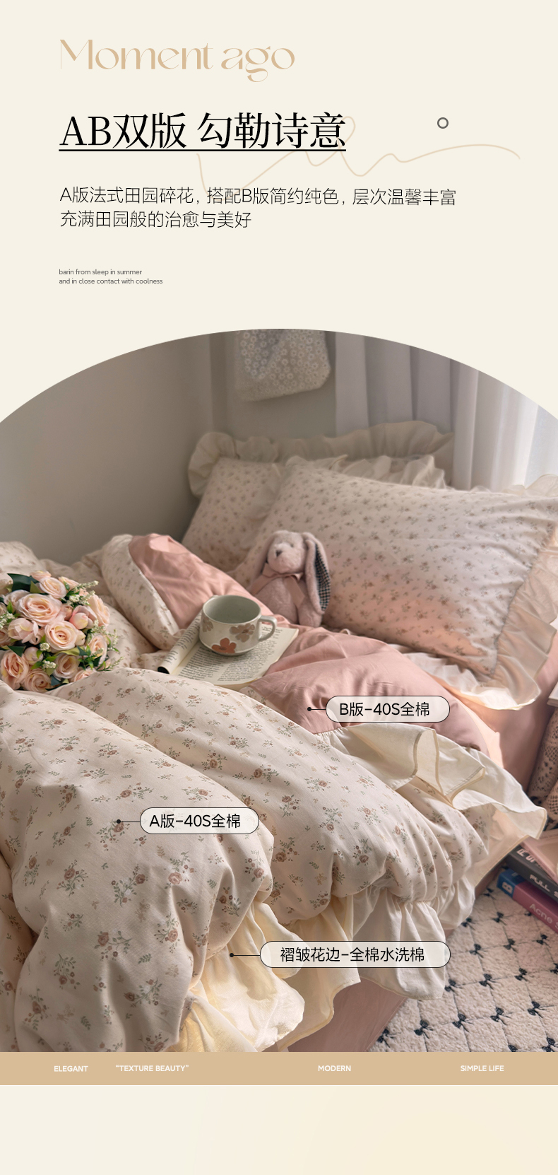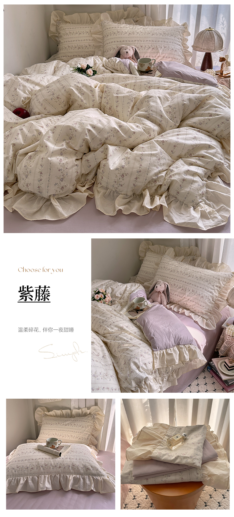 (总)艾咪-Amy ntmy 2026新款法式田园风全棉纯棉花边款四件套,黛玫,青野,知夏,紫藤,紫菀