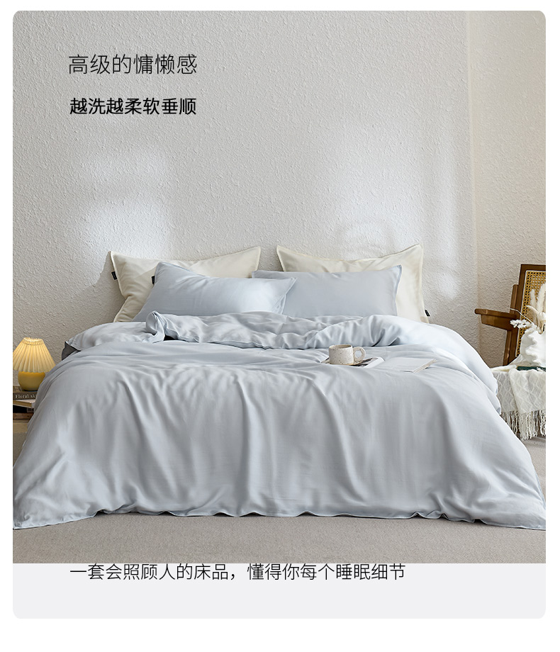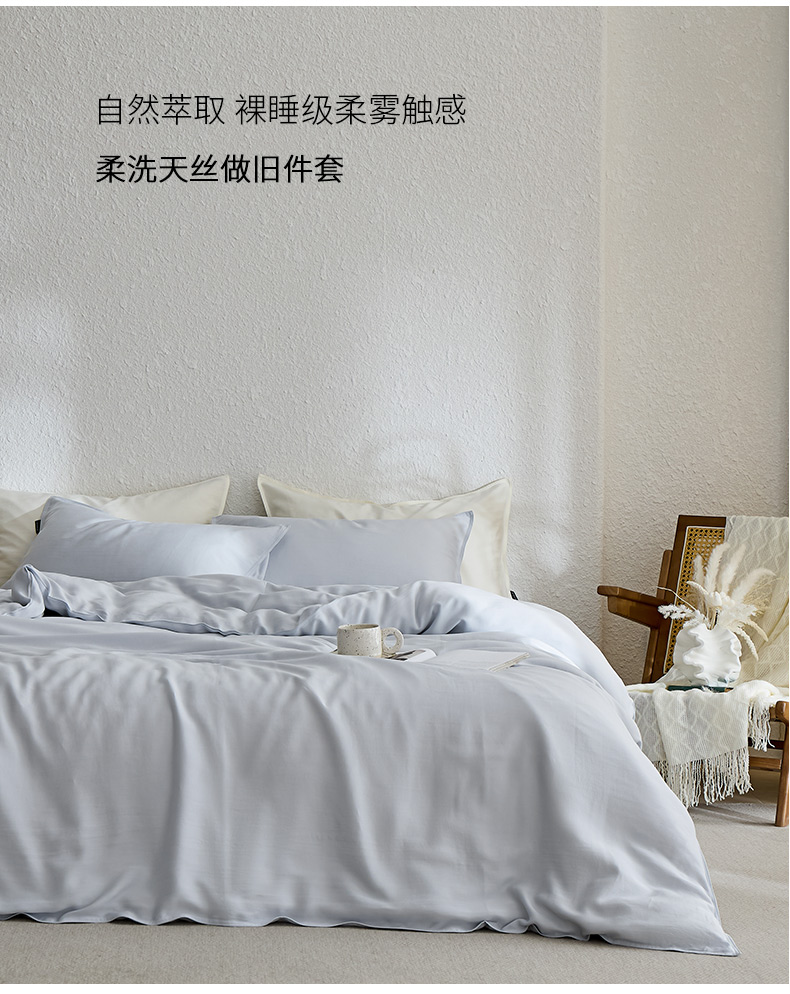 禧禾 2026新款60支兰精天丝柔洗做旧四件套序禾 微风蓝